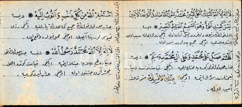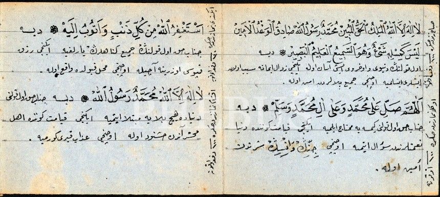 Hattat Mehmet Şevket´in refikasının el yazısı ile yazdığı metinler, 12x70 cm