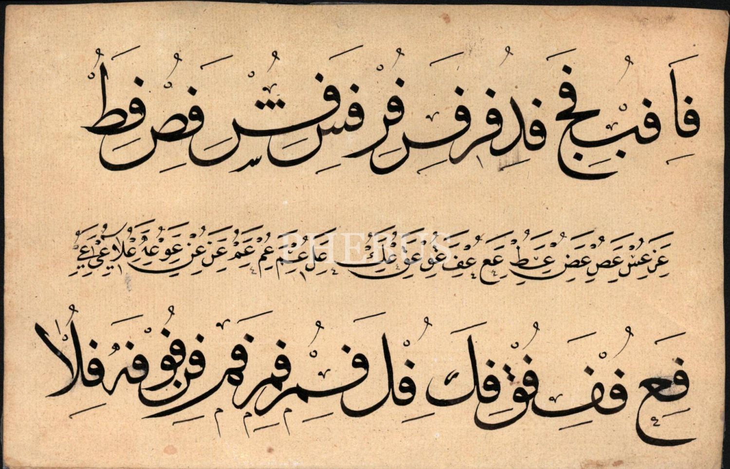 Hoca işi sülüs-nesih hurufat meşki, 23x29 cm