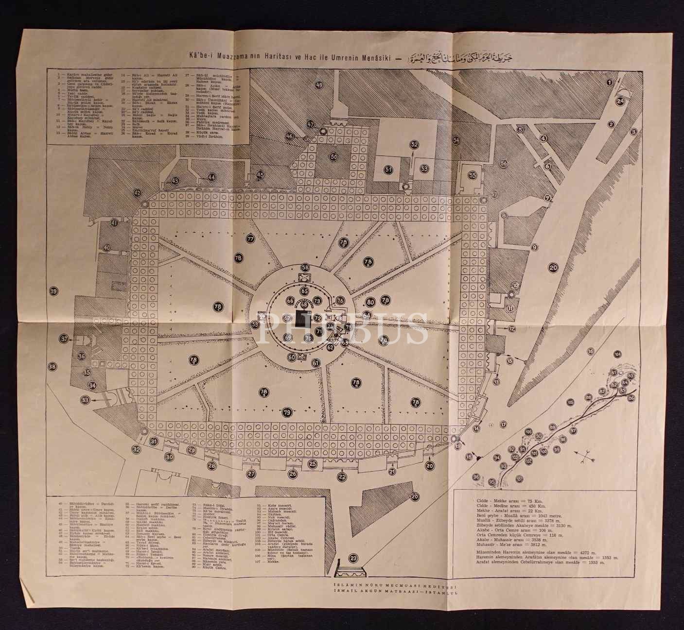 Kâ´be-i Muazzama´nın haritası ve hac ile umrenin menâsiki, İsmail Akgün Matbaası-İstanbul, 44x50 cm