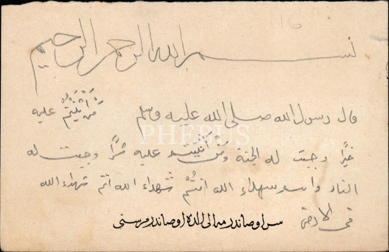Halim Efendi terekesinden; rik´a el yazısı ile bir hadis-i şerif ve hatt-ı icâze ile "Sen usandırma eli, el de usandurmaz seni"