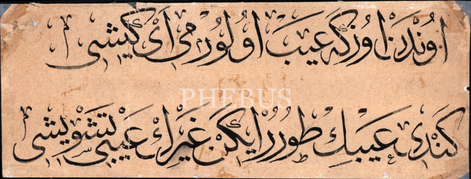 Sülüs yazı ile; "Ondan özge ayb olur mu ey kişi, Kendi aybın durur iken gayrın aybı teşvîşî", 8x20 cm