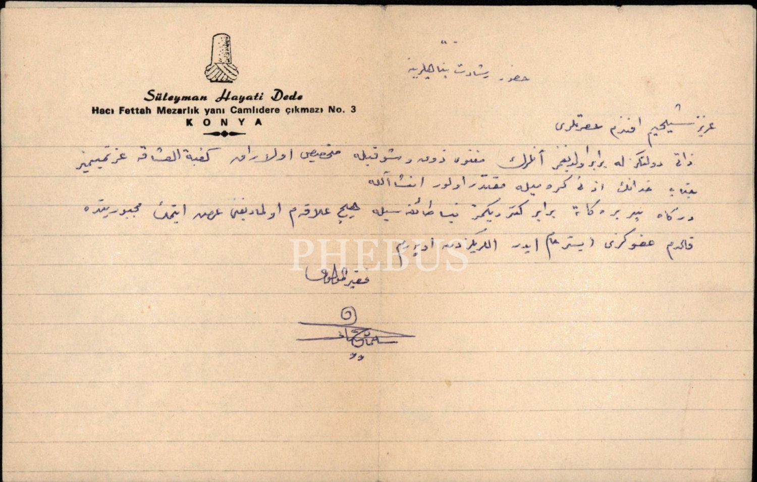 Mevlevi Süleyman Hayati Dede'nin Şeyhine hitaben kaleme aldığı ıslak imzalı özür mektubu, 15x23 cm