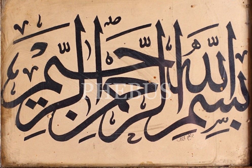 İbrahim ketebeli sülüs besmele, ahşap çerçevesinde 18x23 cm