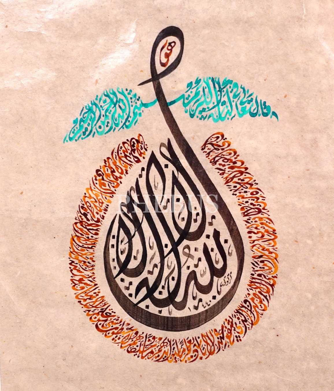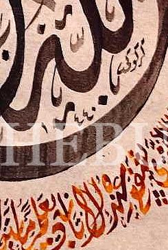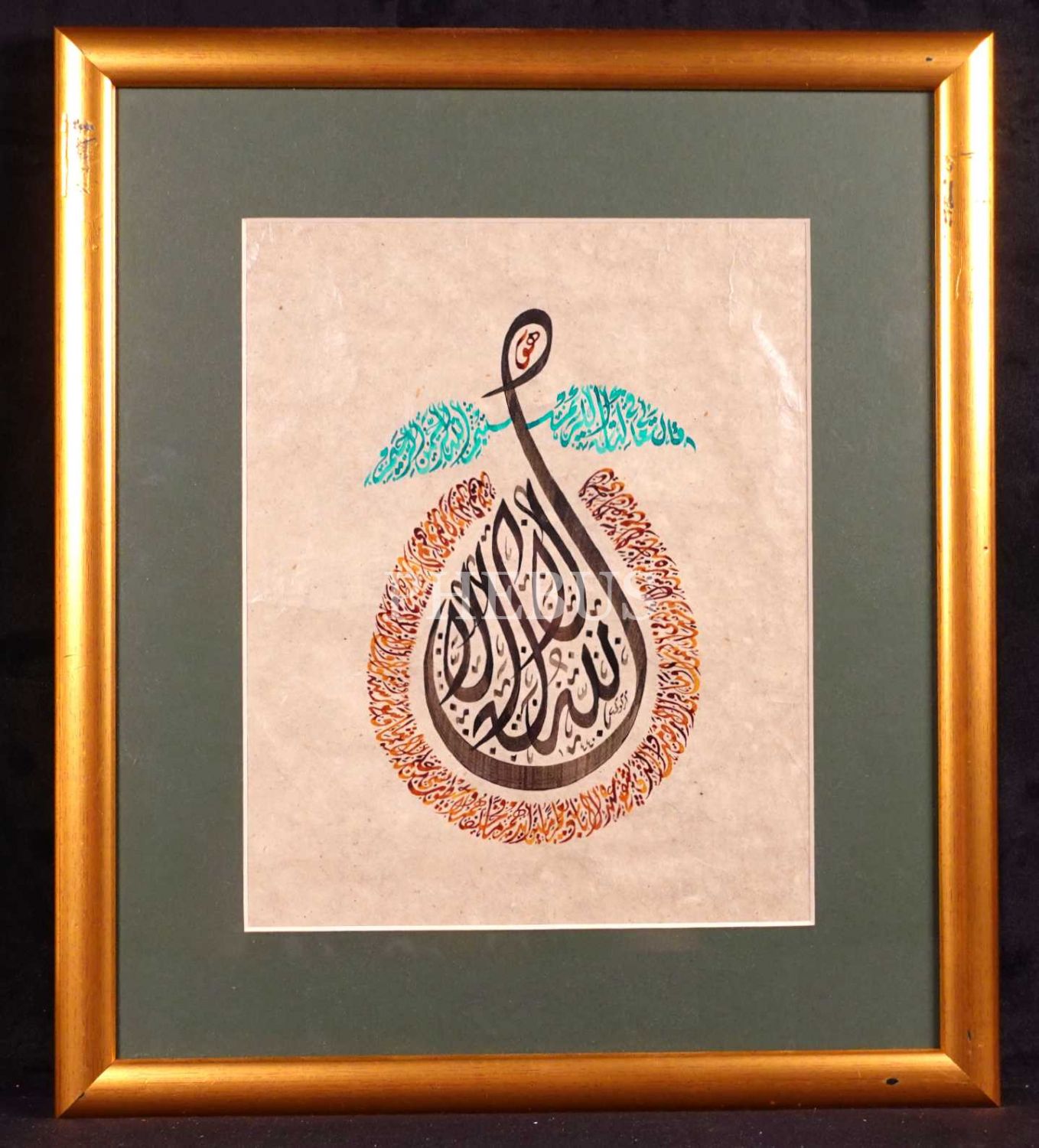 Kerküki ketebeli 1440 tarihli celî divânî yazı ile armudî formda besmele ve Ayete´l-Kürsî, yazı: 20x25 cm