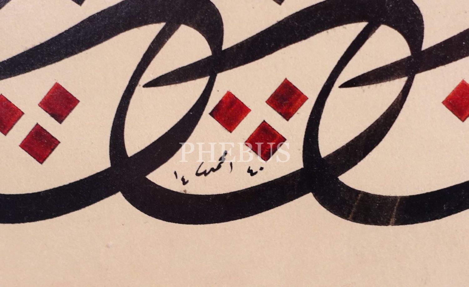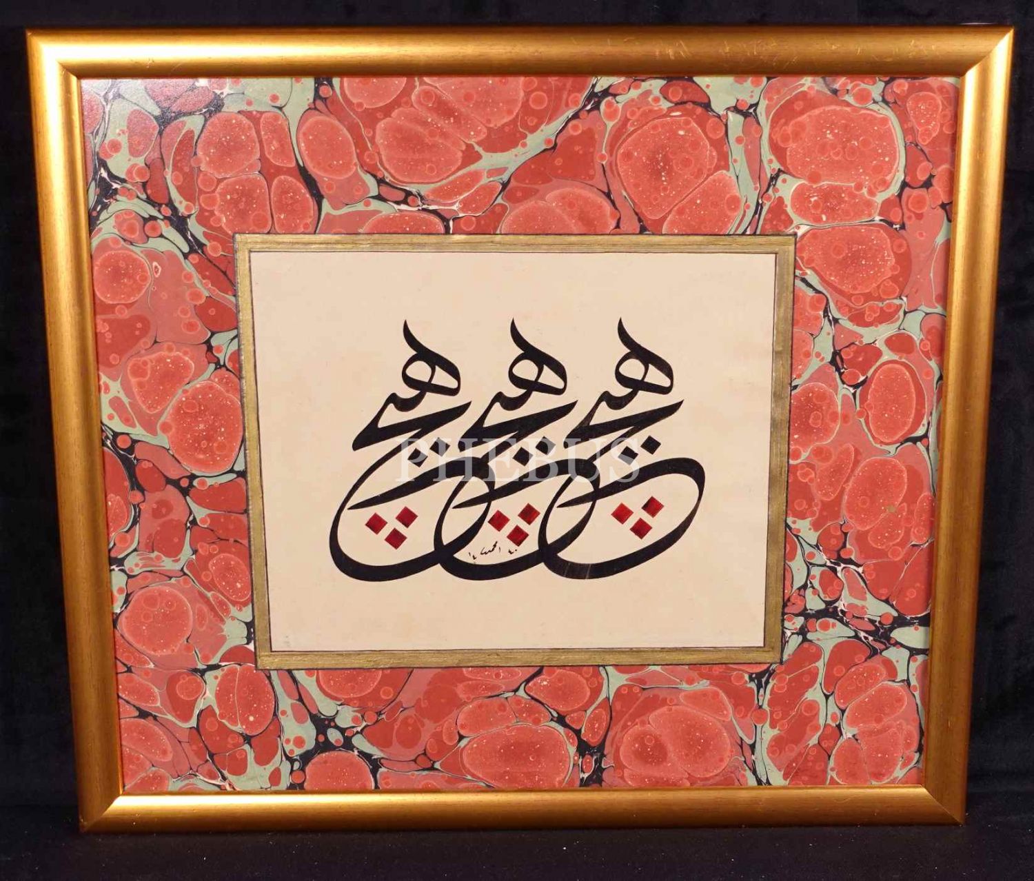Mehmet ketebeli, 1440 tarihli üçlü hiç tasarımı, ebru pervazı içinde 36x41 cm