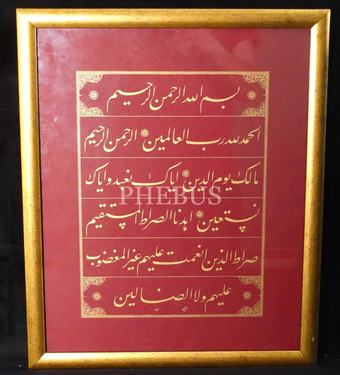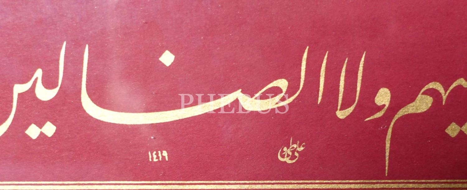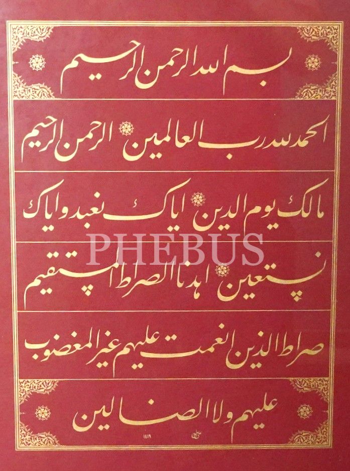 Ali Toy ketebeli, 1419 tarihli ta´lik yazı ile Fatiha Suresi, özgün baskı, 38x46 cm