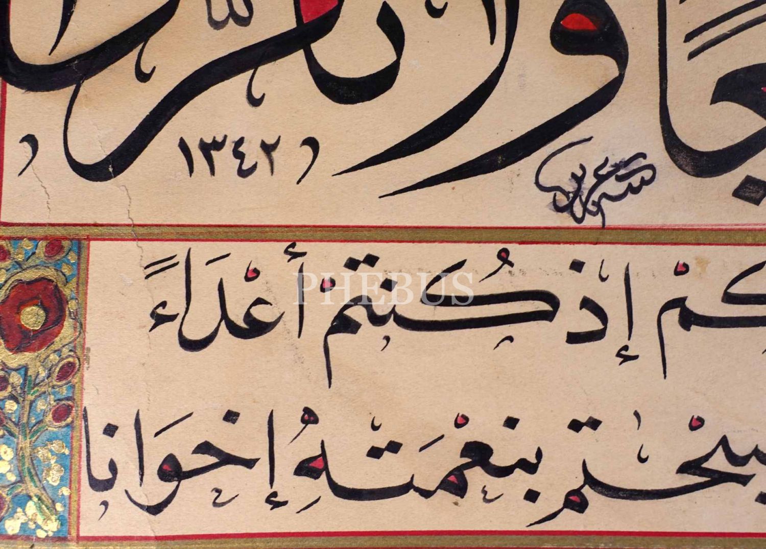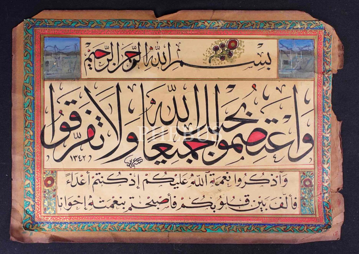 Aziz ketebeli, 1342 tarihli sülüs-nesih yazı; Âl-i İmran Suresi 103. ayet, 32x46 cm