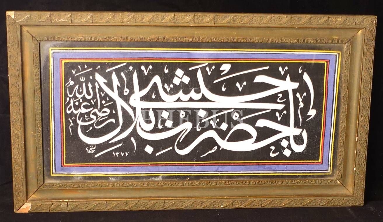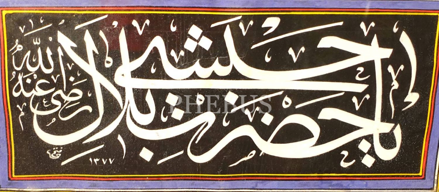 Fethi ketebeli, 1377 tarihli celî sülüs "Yâ Hazreti Bilâl-i Habeşî (r.a.)", 34x62 cm