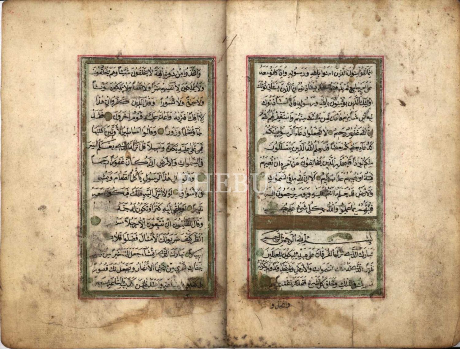 Yeni ebru kapağı içinde el yazması Kur´an´dan bir forma, 20 sayfa, 12x17 cm
