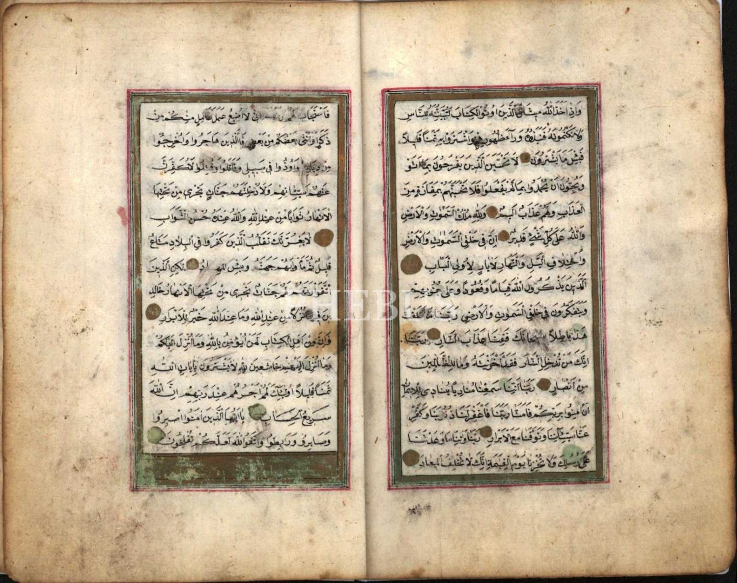 Yeni ebru kapağı içinde el yazması Kur´an´dan bir forma, 20 sayfa, 12x17 cm