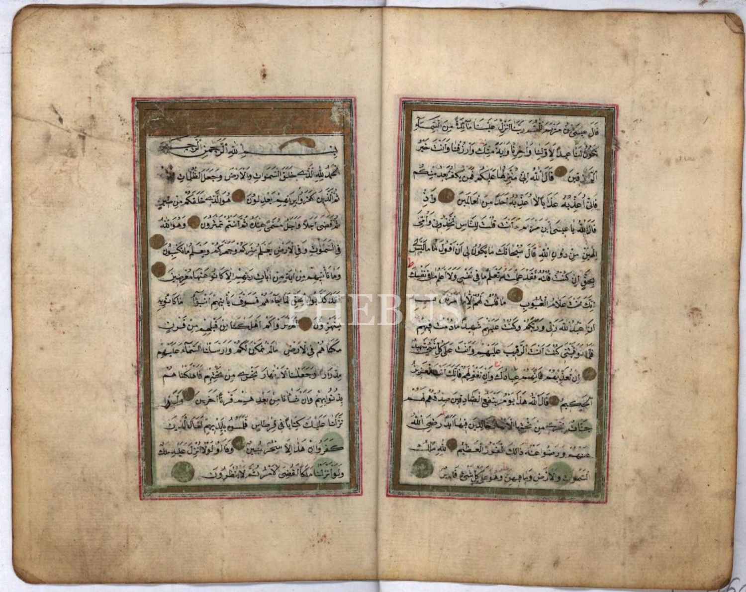 Yeni ebru kapağı içinde el yazması Kur´an´dan bir forma, 20 sayfa, 12x17 cm