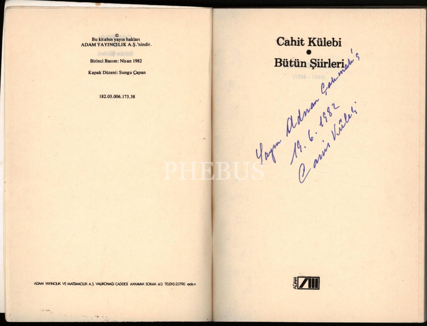BÜTÜN ŞİİRLERİ, Cahit Külebi, 1982, Adam yayınları, 258 sayfa, 13,5 X 19,5 cm… İthaflı ve imzalı…