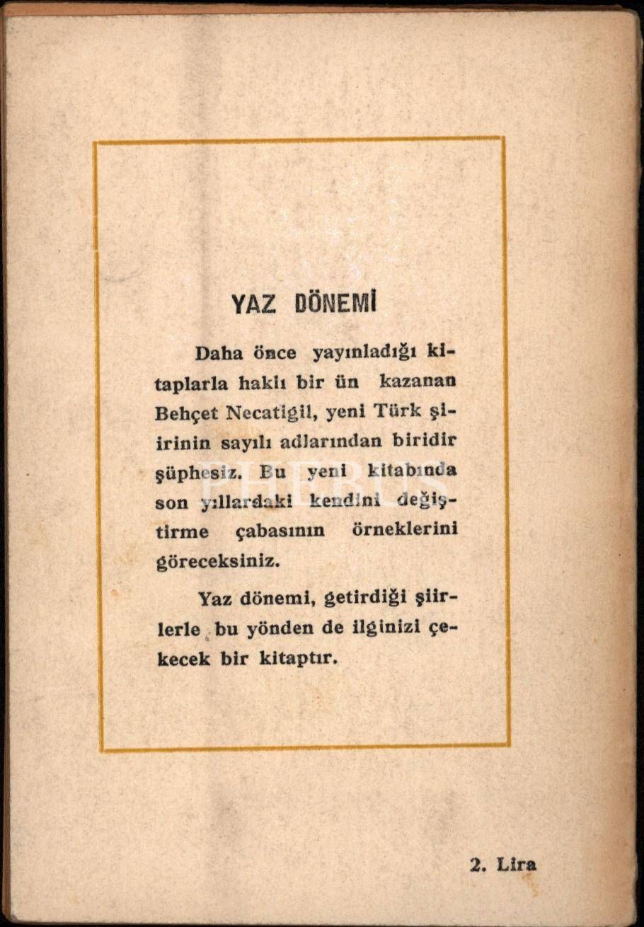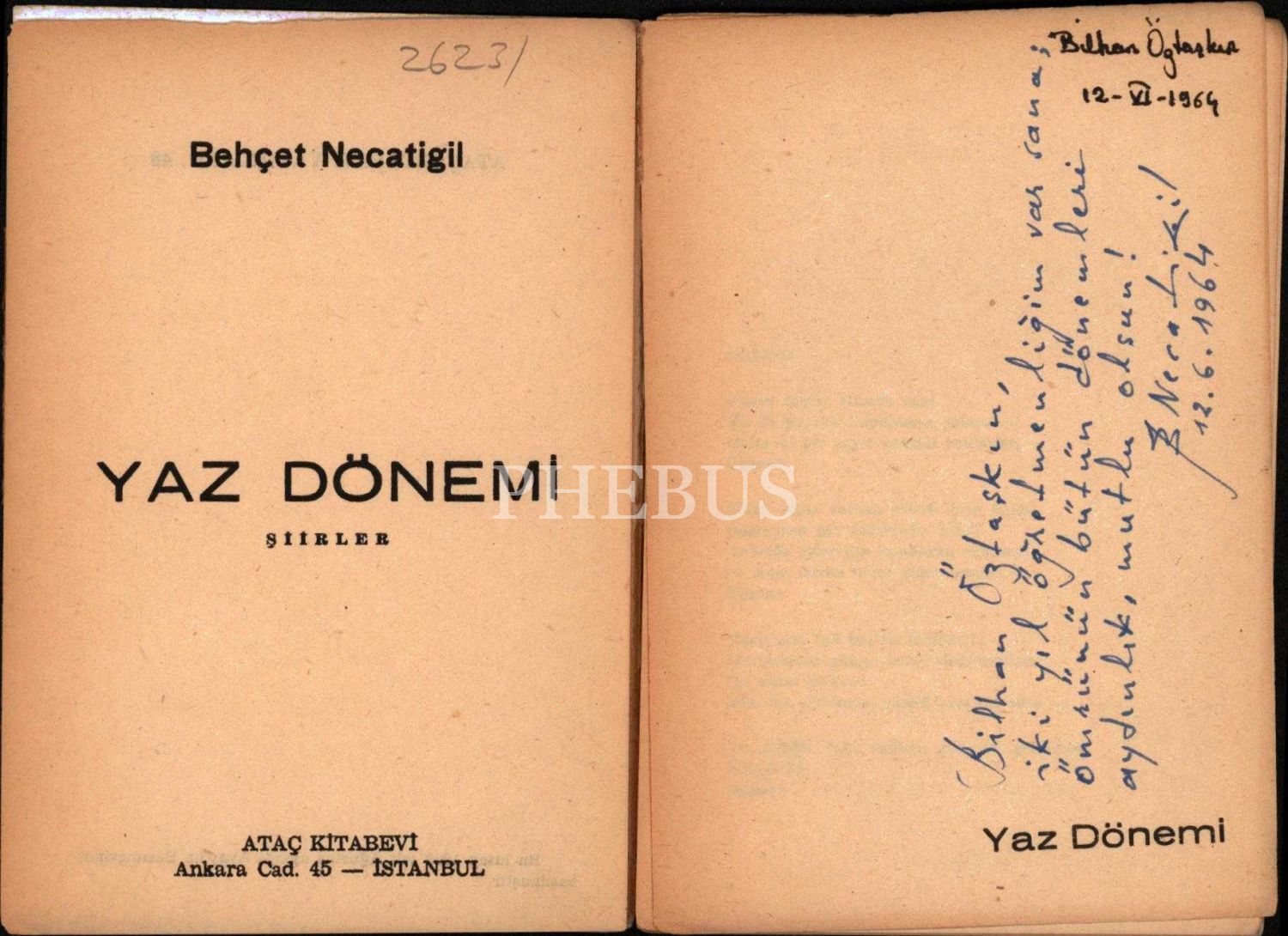 YAZ DÖNEMİ, Behçet Necatigil, 1963, Ataç Kitabevi, 48 sayfa, 11 X 16,5 cm… İthaflı ve imzalı…