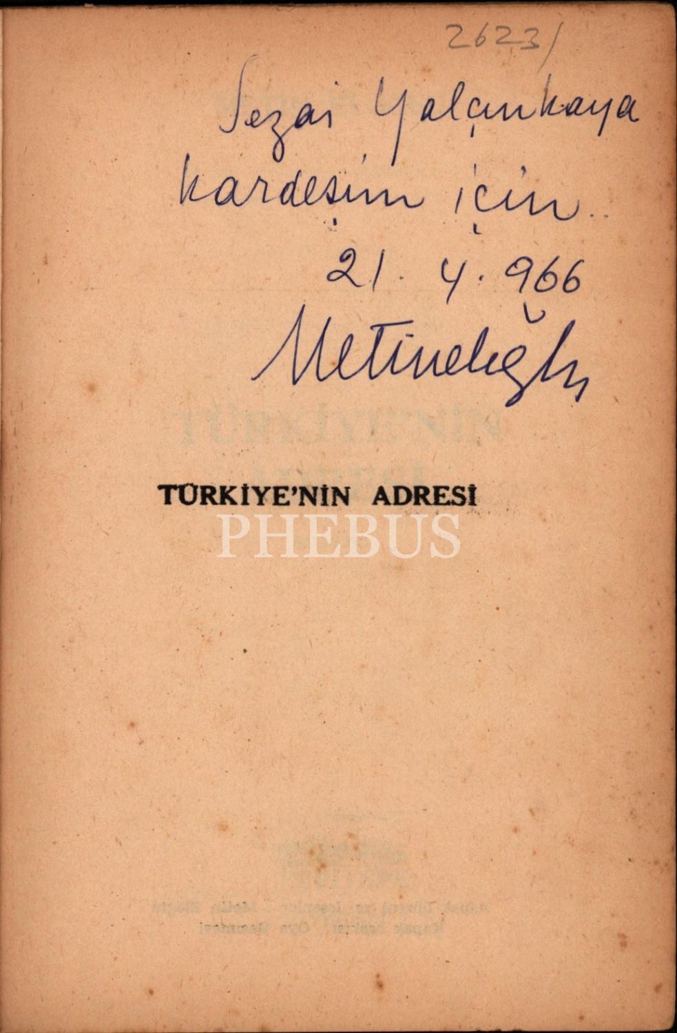 TÜRKİYE´NİN ADRESİ, Metin Eloğlu, 1965, Yeditepe Yayınları, 44 sayfa, 14 X 20 cm… İthaflı ve imzalı…