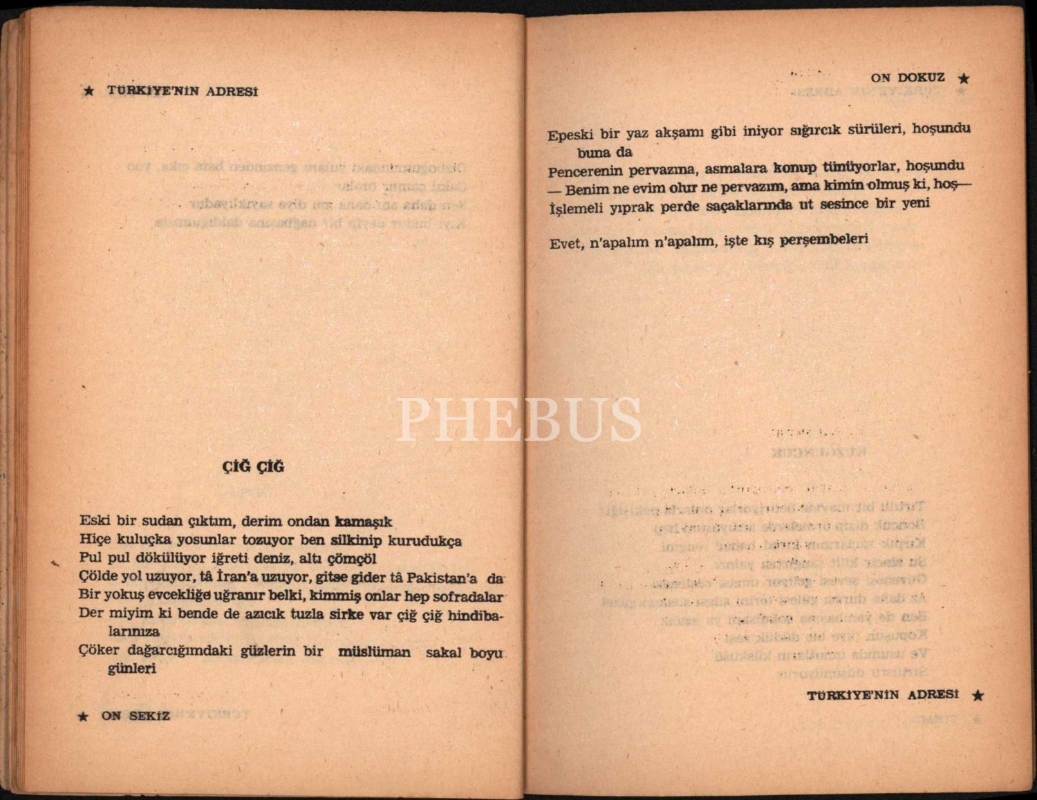Şiire, Garip şiirine yakın bir anlayışla, sokak dilini ustaca kullanarak başlayan ve giderek II. Yeni´ye yaklaşan Metin Eloğlu´nun (1927 - 1985) beşinci şiir kitabı… Kendisinin kapak tasarımı ve desenleriyle…