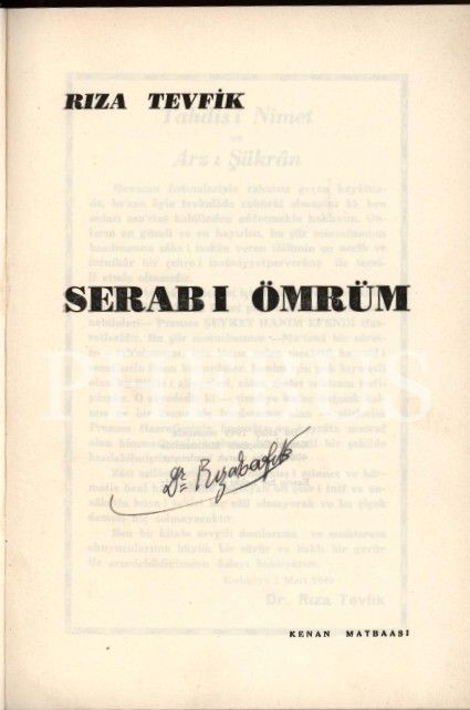 SERAB-I ÖMRÜM, Rıza Tevfik, 1949, Kenan Matbaası, 366 sayfa, 15 X 23 cm… İmzalı…