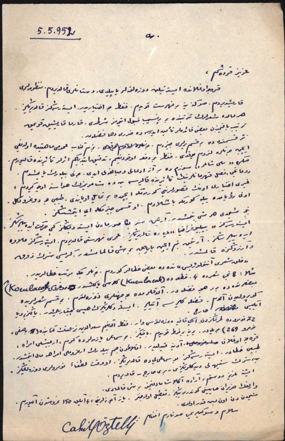 Halk şiiri ve halk türküleri alanında çok sayıda eser vermiş, halk edebiyatı araştırmacısı Cahit Öztelli´nin (1910 - 1978), Varlık Yayınları´nda yayımlanacak olan "Karacaoğlan" kitabıyla ilgili olarak Yaşar Nabi Nayır´a mektubu… "Aziz Kardeşim, Karacaoğlan´da istenilmiş düzeltmeler yapıldı. Destanları kaldırdım..."