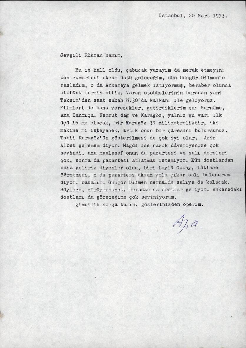 Özellikle, A. Kadir´le birlikte yaptıkları, aşılması imkânsız İliada ve Odysseia çevirileriyle tanınan, eski Yunan ve Roma dilleri uzmanı, filolog, arkeolog ve denemeci Azra Erhat´tan (1915 - 1982), dönemin edebiyatçılarının yakından tanıdığı, TED Ankara Koleji´nin efsane edebiyat öğretmeni Rüksan Günaysu´ya yazılmış mektup; zarfıyla birlikte...