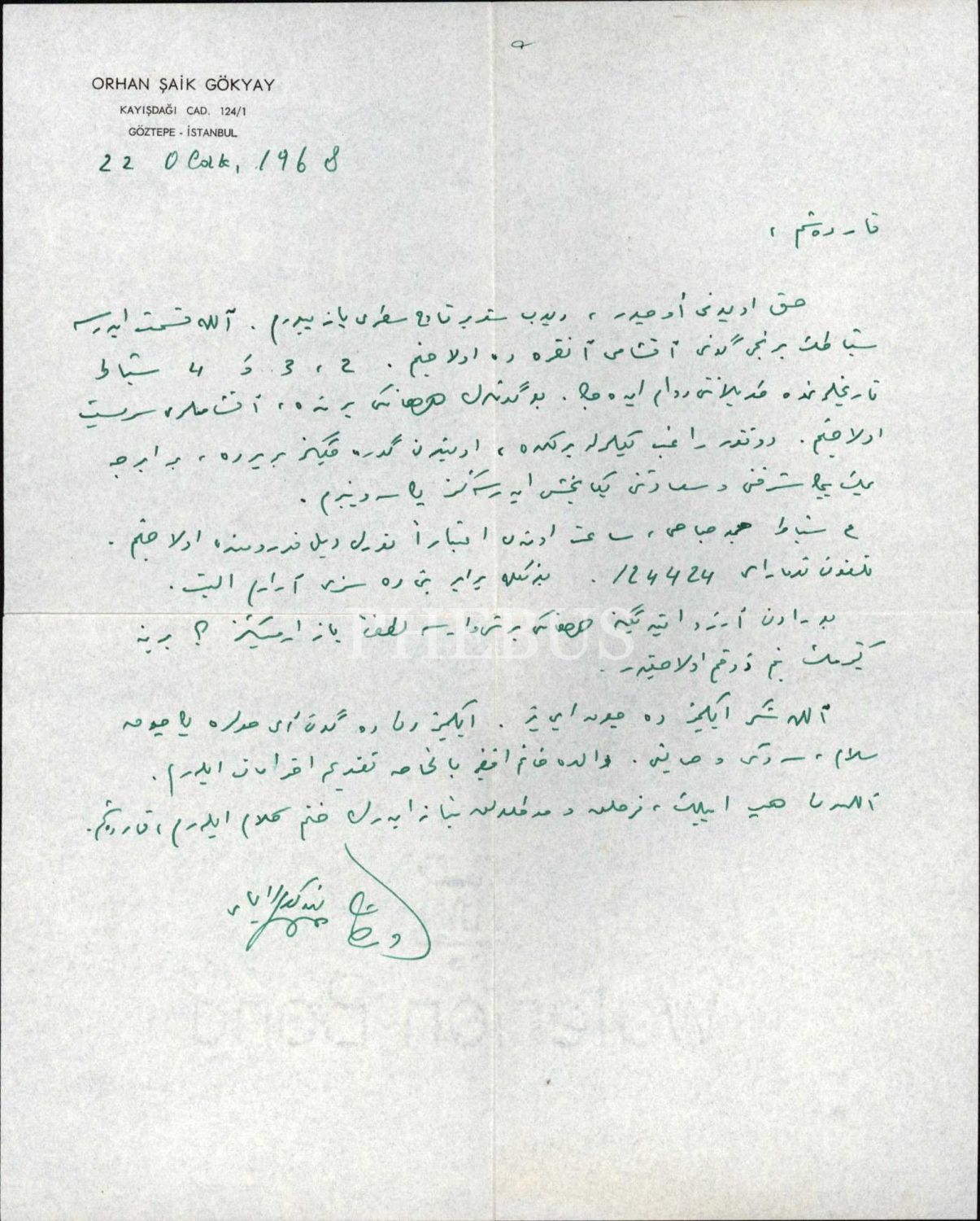 ORHAN ŞAİK GÖKYAY´DAN BURHAN GÜNAYSU´YA MEKTUP (Osmanlıca), 20 x 25 cm…