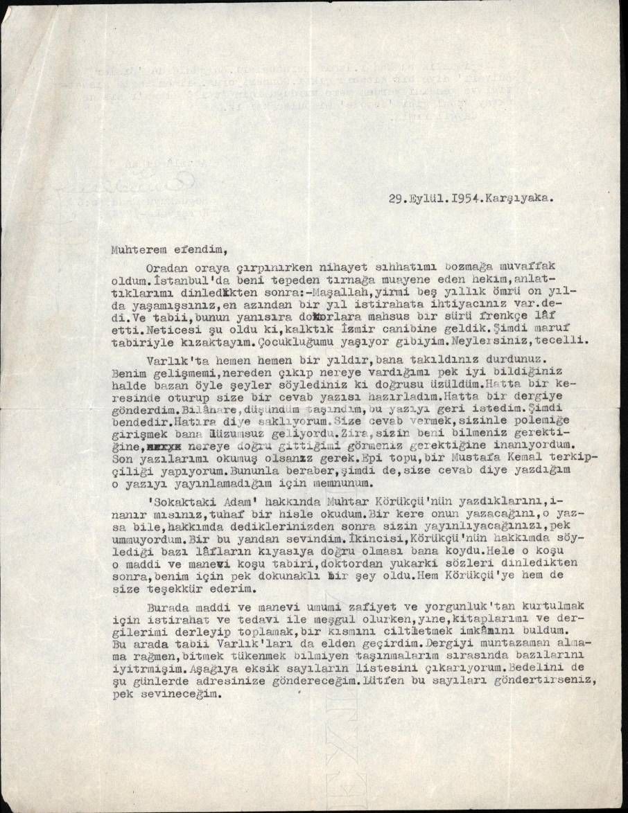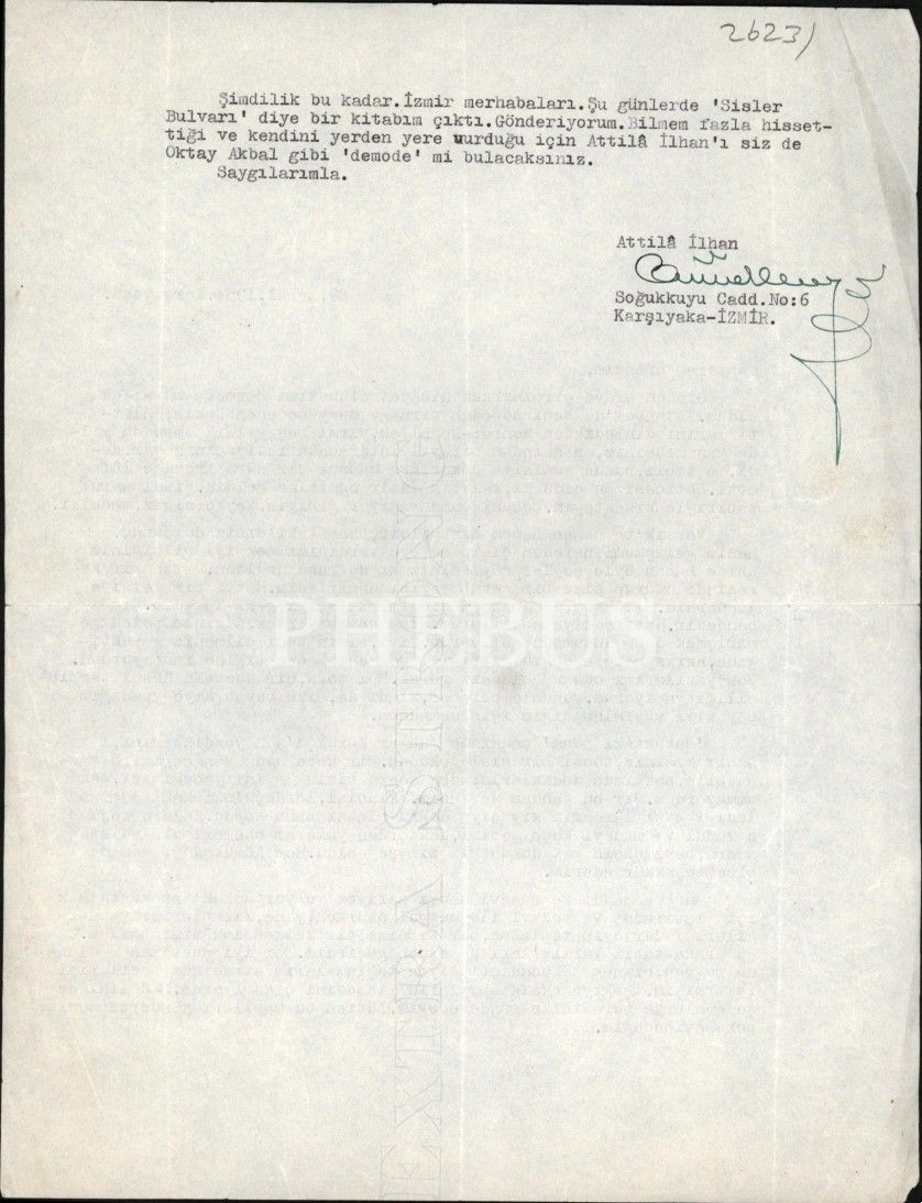 Şair, romancı, yayıncı, senarist, düşünür, denemeci, eleştirmen ve gazeteci Attila İlhan´ın (1925 - 2005); Varlık dergisi ve Varlık Yayınları sahibi Yaşar Nabi Nayır´a (1908 - 1981) yazdığı, hafif sitemli mektubu: "… Şu günlerde ´Sisler Bulvarı´ diye bir kitabım çıktı. Gönderiyorum. Bilmem fazla hissettiği ve kendini yerden yere vurduğu için Attila İlhan´ı siz de Oktay Akbal gibi ´demode´ mi bulacaksınız."