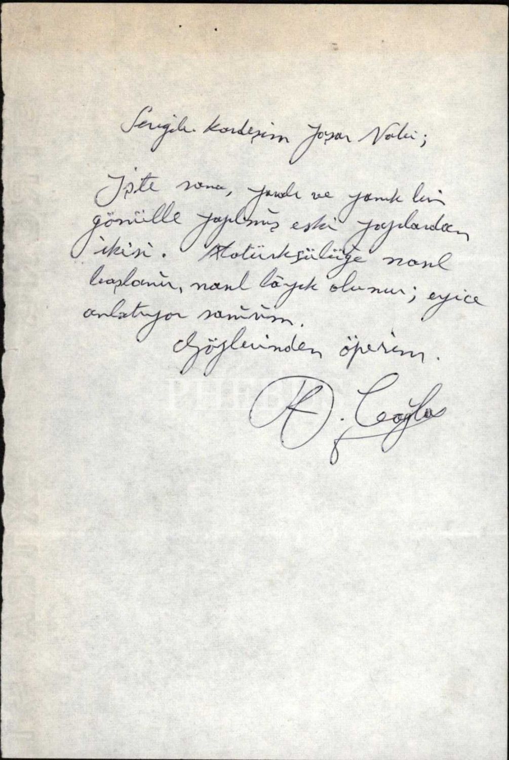 Cumhuriyet döneminin "resmî" şairi ve 10. Yıl Marşı´nın iki şairinden biri olan Behçet Kemal Çağlar´ın 1908 - 1969), Varlık dergisi ve Varlık Yayınları´nın kurucusu Yaşar Nabi Nayır´a gönderdiği iki eski yazısıyla ilgili açıklama: "… Atatürkçülüğe nasıl başlanır, nasıl layık olunur; eyice anlatıyor sanırım..."