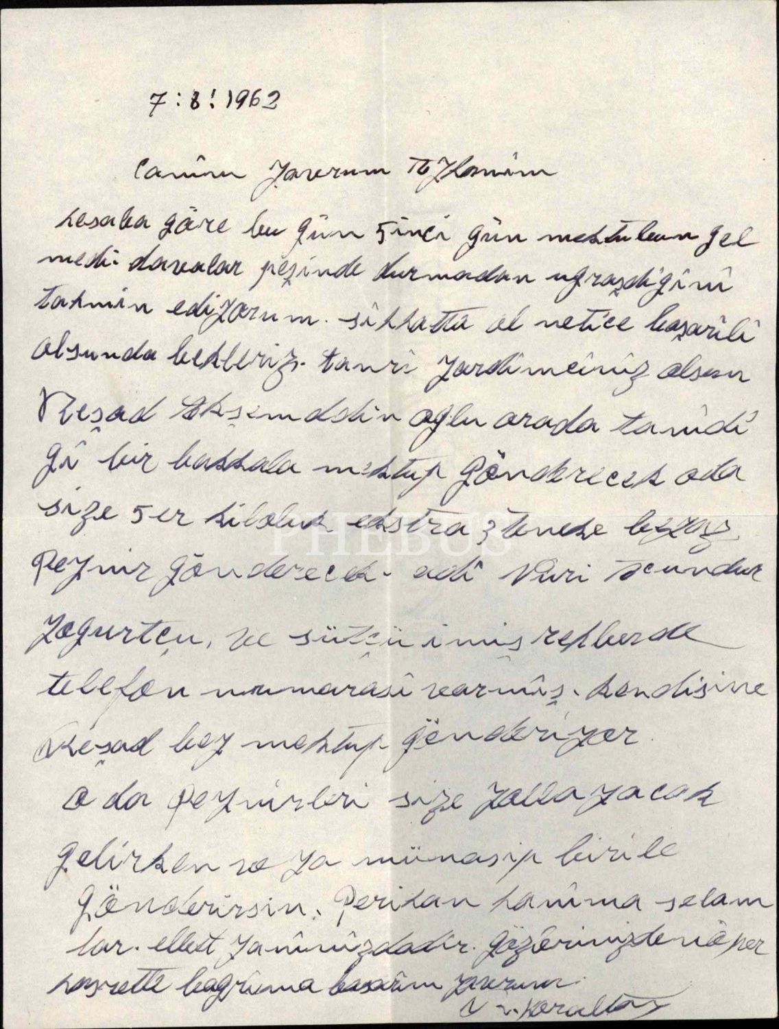 1950 - 1960 yılları arasında TBMM Başkanlığı yapan ve 27 Mayıs Darbesi´yle görevine son verilerek idamla yargılanan ancak cezası ömür boyu hapse çevrilen Refik Koraltan´ın (1889 - 1974) cezaevinden kızına yazdığı 7.8.1962 tarihli mektup…