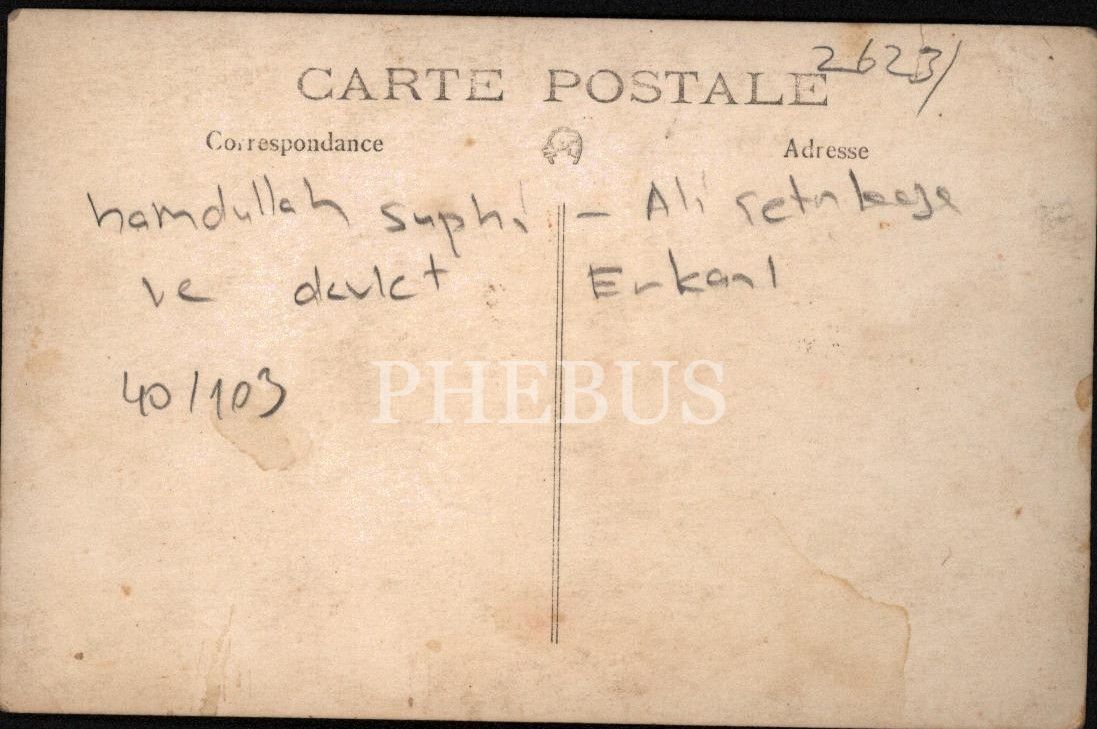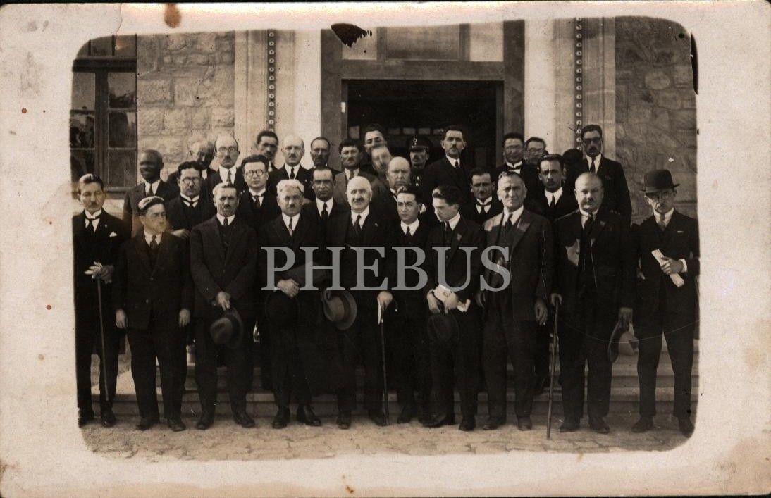 Türk Ocağı kurucusu ve en uzun süreli başkanı, yazar ve çok ünlü bir hatip olan Hamdullah Suphi Tanrıöver (1885 - 1966) ve "Kel Ali" lakabıyla anılan, asker, siyasetçi ve İstaiklal Mahkemesi başkanı Ali Çetinkaya (1878 - 1949), muhtemelen devlet erkânından bir toplulukla bir arada...