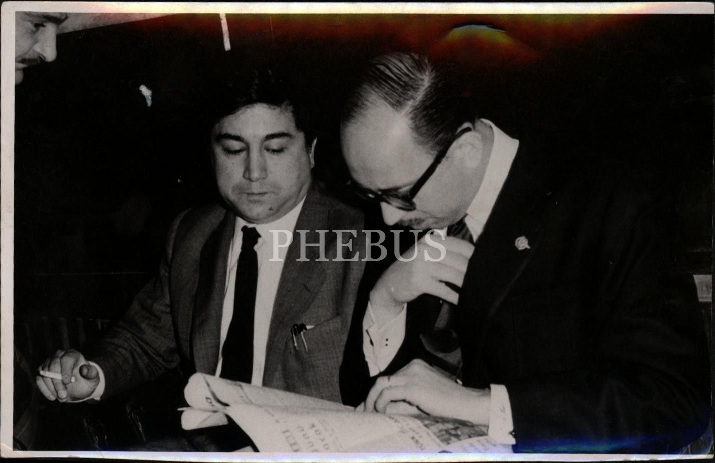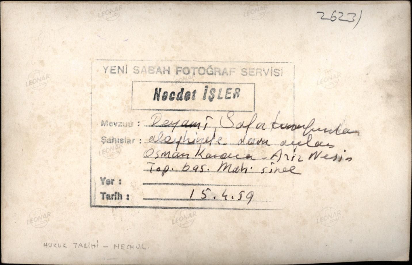 Türk mizah edebiyatının en yaratıcı, en çalışkan, en üretken kalemi, uluslararası yazarımız Aziz Nesin´le (1915 - 1995) yine Türk edebiyatının en çalışkan, en verimli yazarlarından Peyami Safa (1899 - 1961), 1959 yılında sert bir kalem kavgasına giriştiler. Fotoğraf, bu kavga neticesinde Peyami Safa tarafından mahkemeye verilen Aziz Nesin´in, ONK Ajansı kurucusu, gazeteci Osman Necmi Karaca ile davaya konu olan yazıları incelerken çekilmiş.