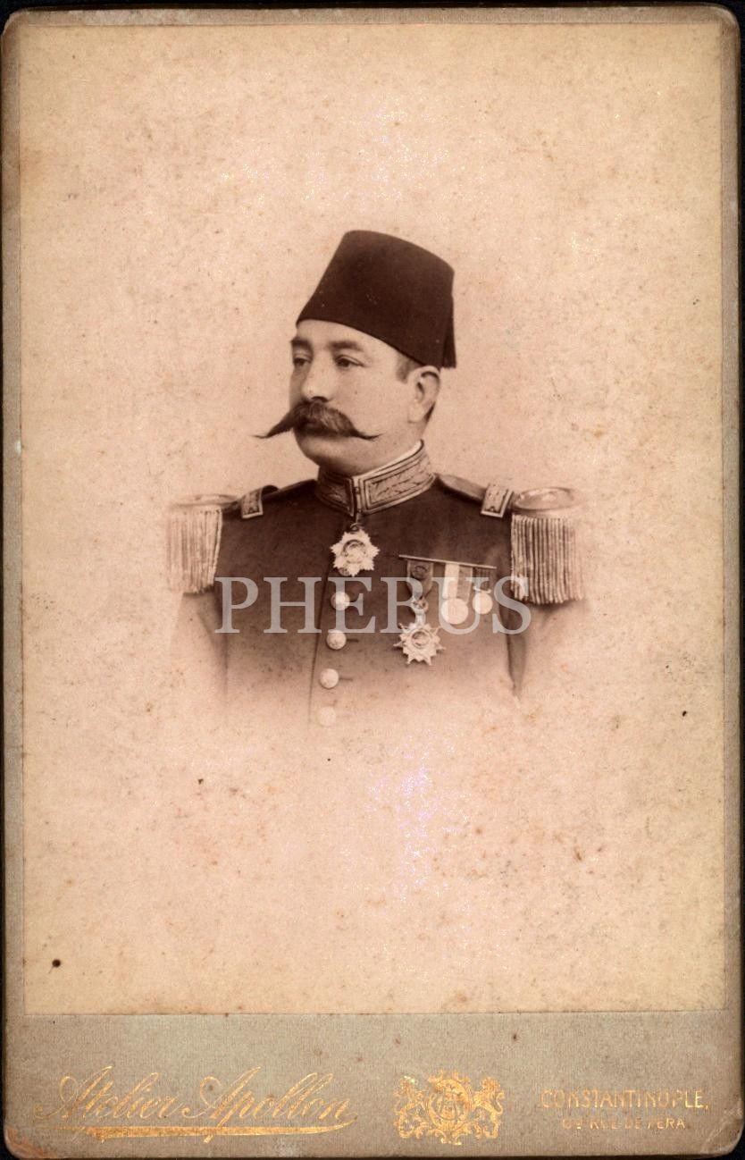 Nişanlı ve madalyalı Osmanlı subayı, Apollon Fotoğrafhanesi-Constantinople, 10x16 cm