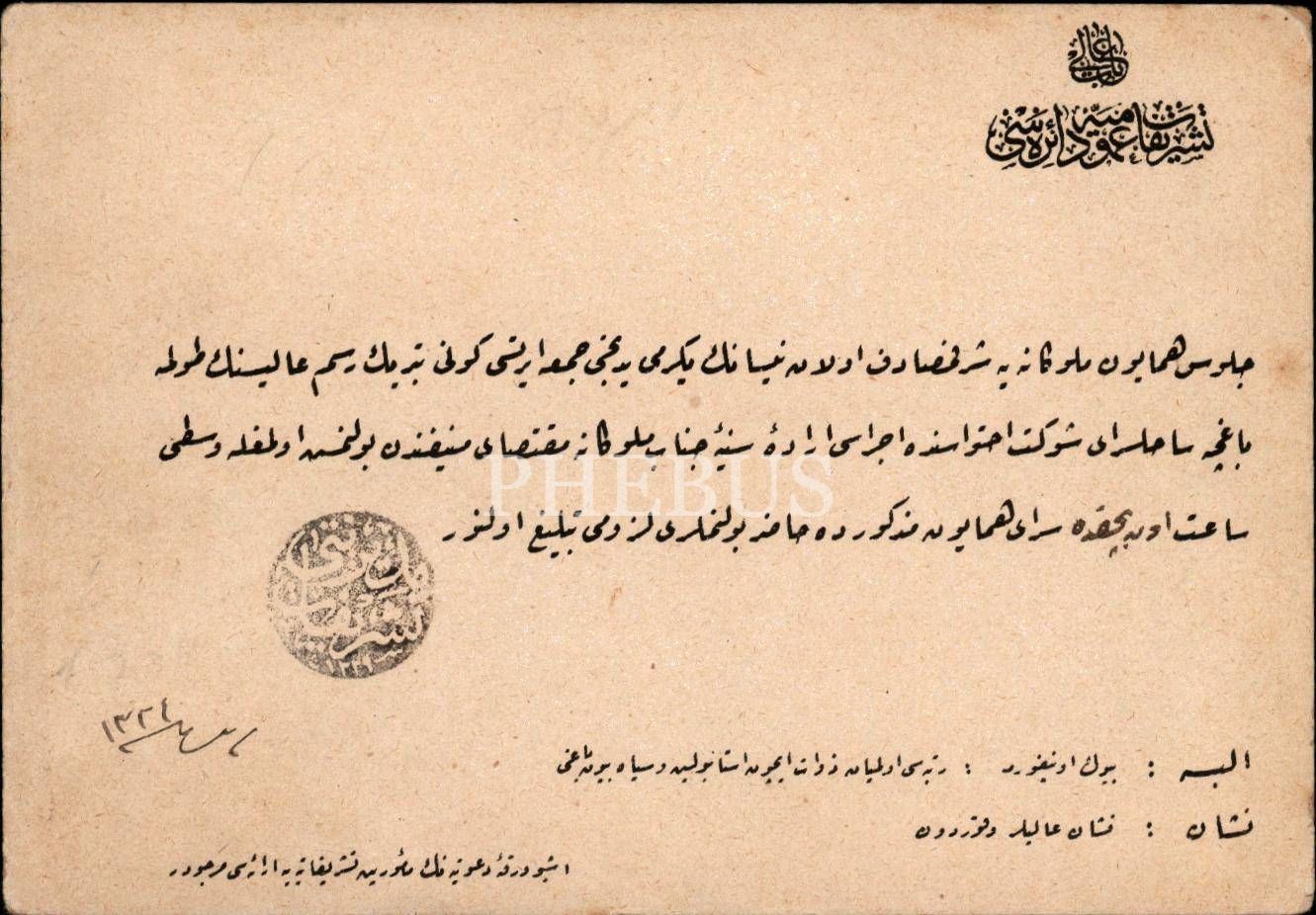 Sultan Vahdeddin´in Dolmabahçe Sarayı´nda gerçekleşen cülus merasiminin davetiyesi, 12x17 cm