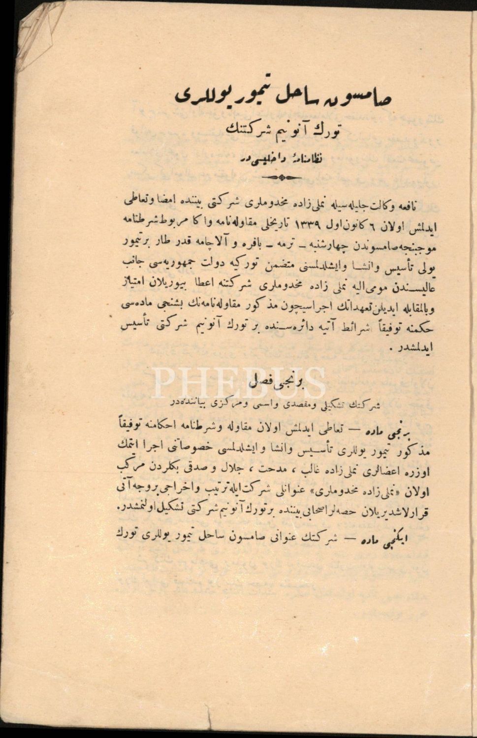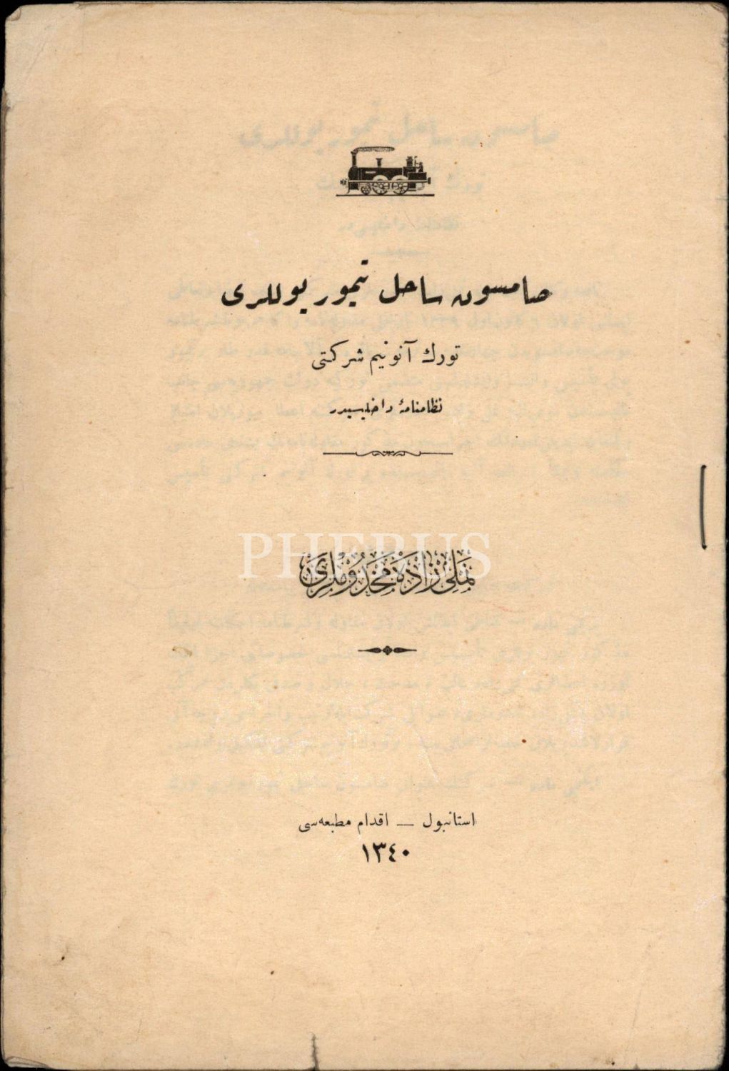 Samsun Sahil Demiryolları Türk A.Ş. Dahilî Nizamnamesi, İkdam Matbaası, İstanbul 1340, 16 s., 16x24 cm