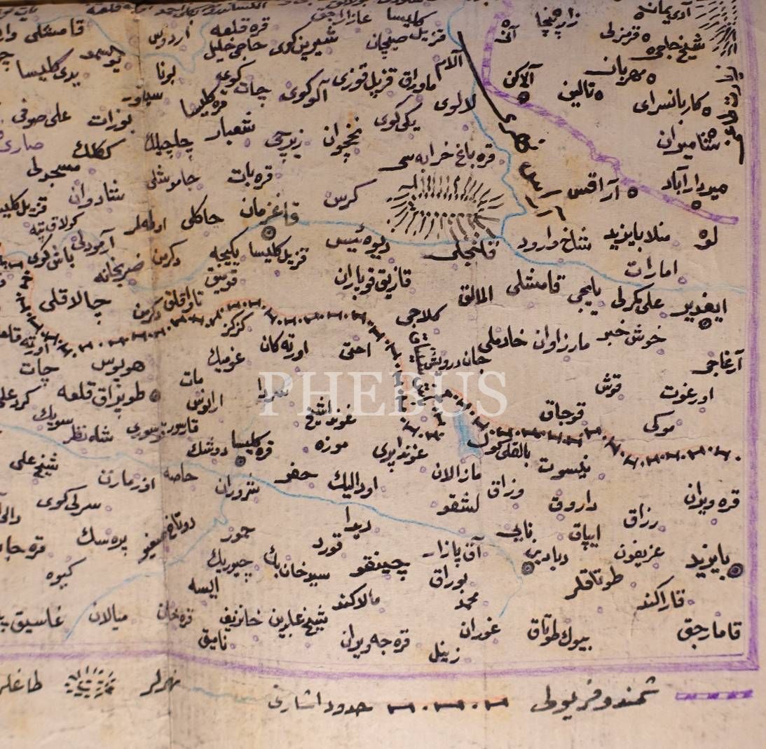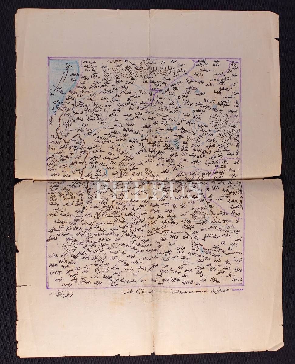 Kazanlı M. Salih imzalı el çizimi detaylı Kars haritası, 35x46 cm