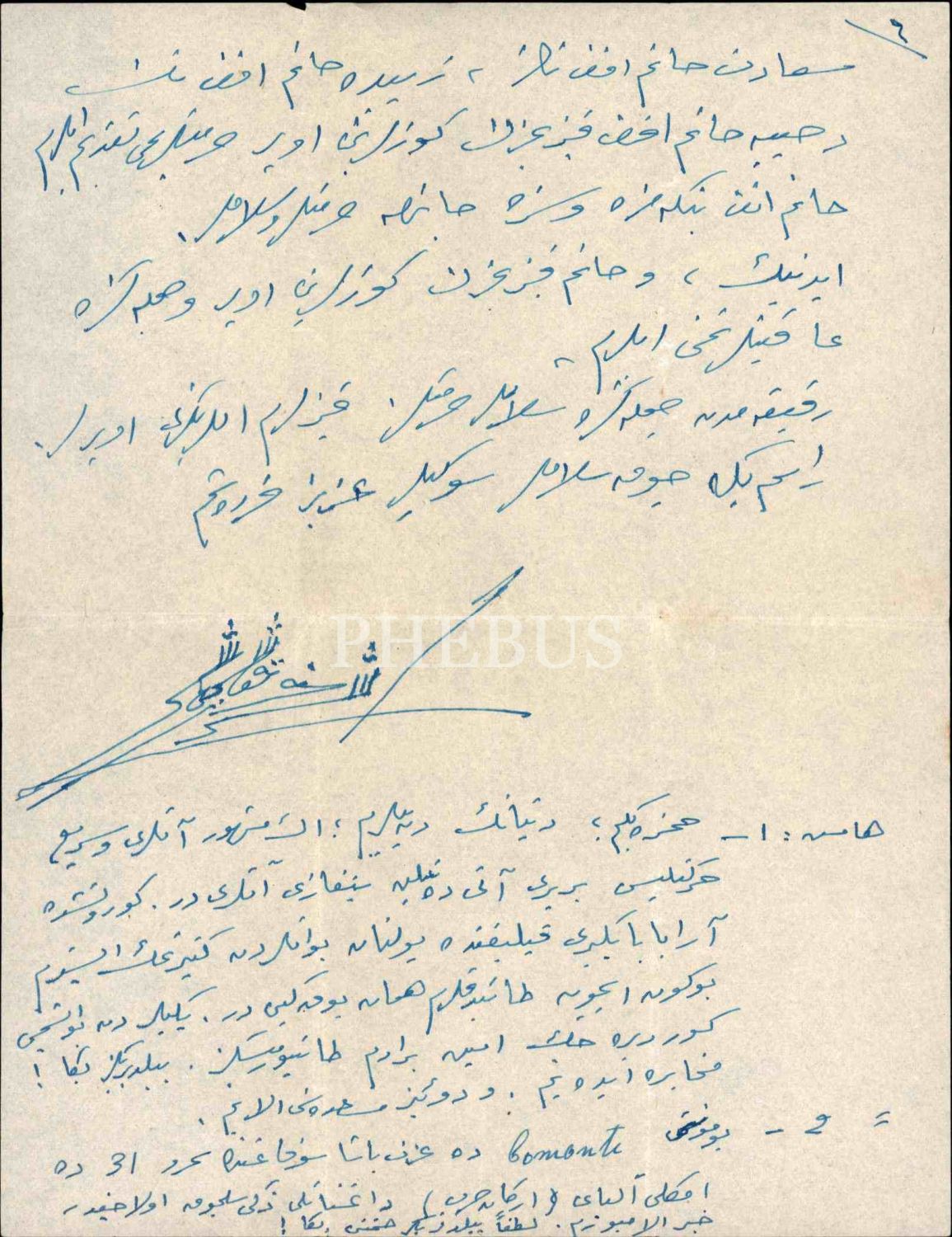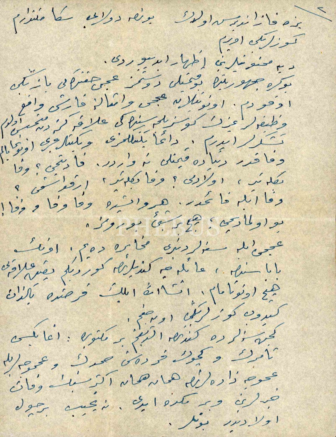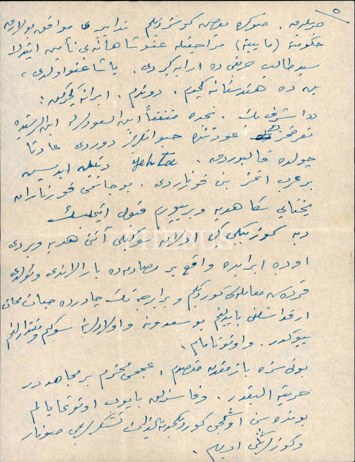 Teşkilât-ı Mahsusa'nın kurucusu Eşref Kuşçubaşı tarafından Irak Şeyhler Şeyhi Acemî [Uceymî] Sadun Paşa hakkında yazılan 6 sayfalık ıslak imzalı mektup, İzmir 1958, 20x27 cm