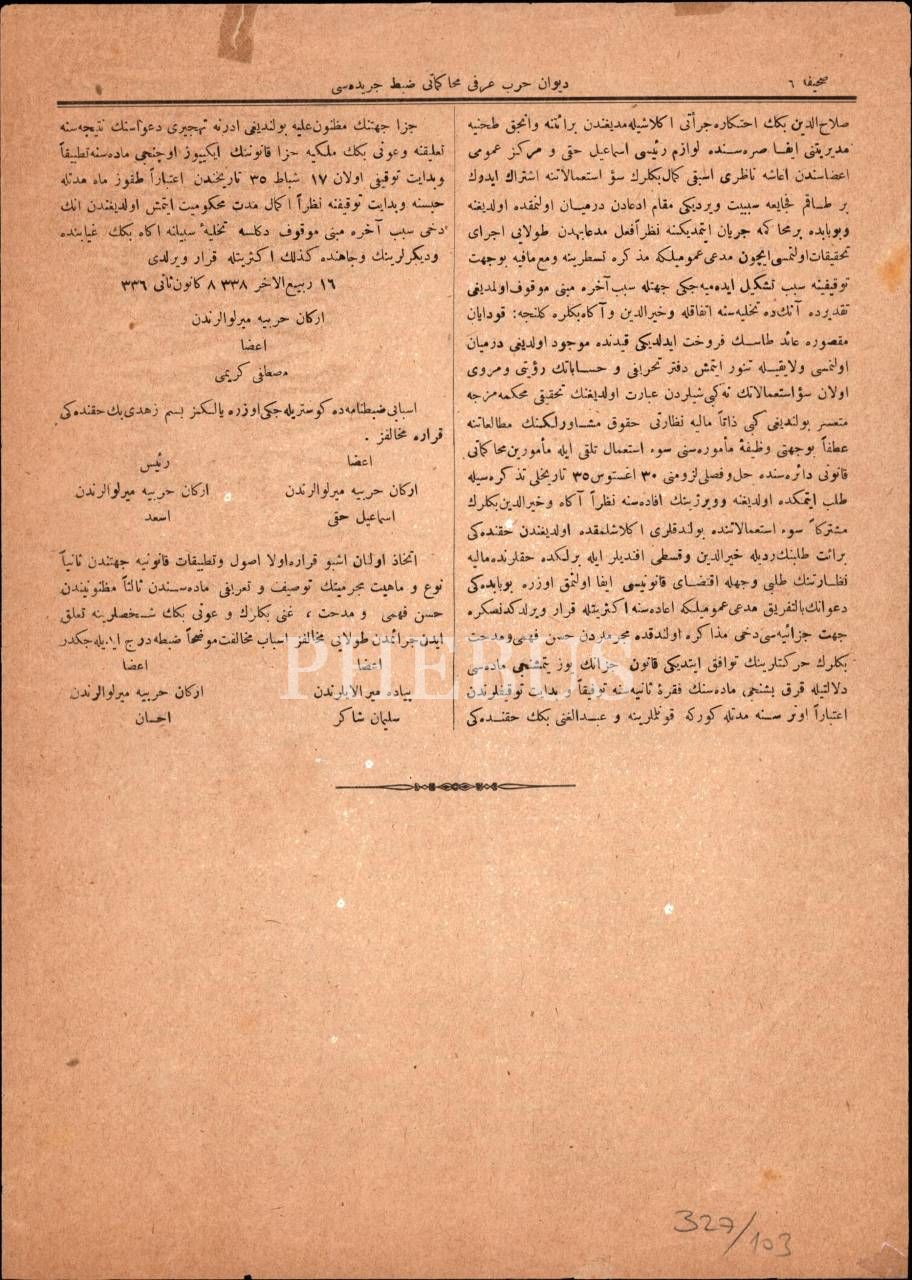 Ceridede yargılanan zanlıların isimleri ile karar sureti yer almaktadır.