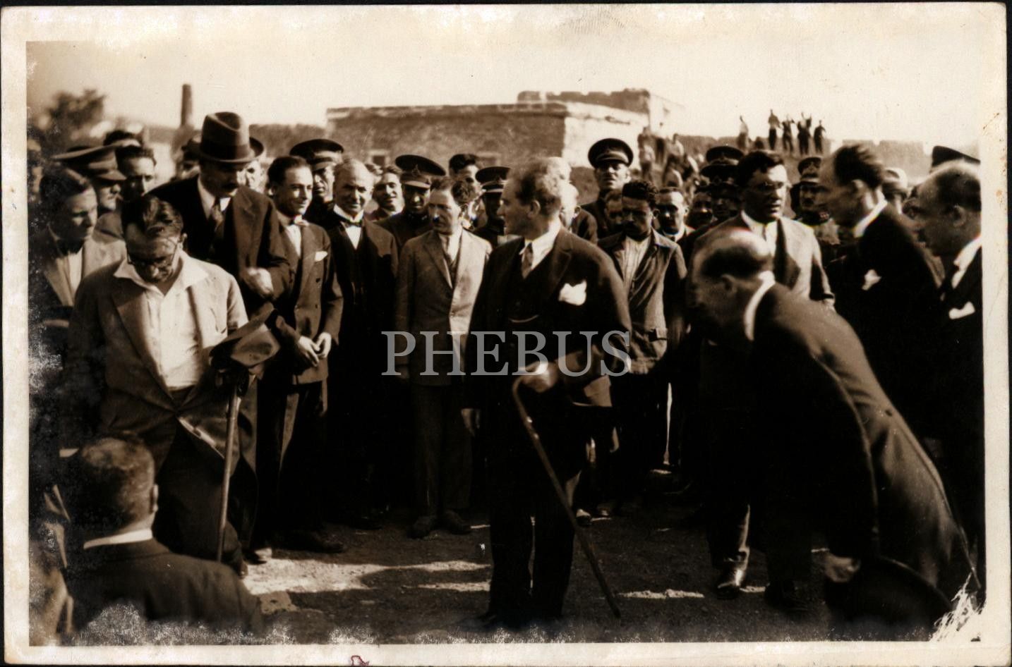 Topluluk içerisinde Mustafa Kemal Atatürk, Ruşen Eşref Ünaydın vd. 12x18 cm