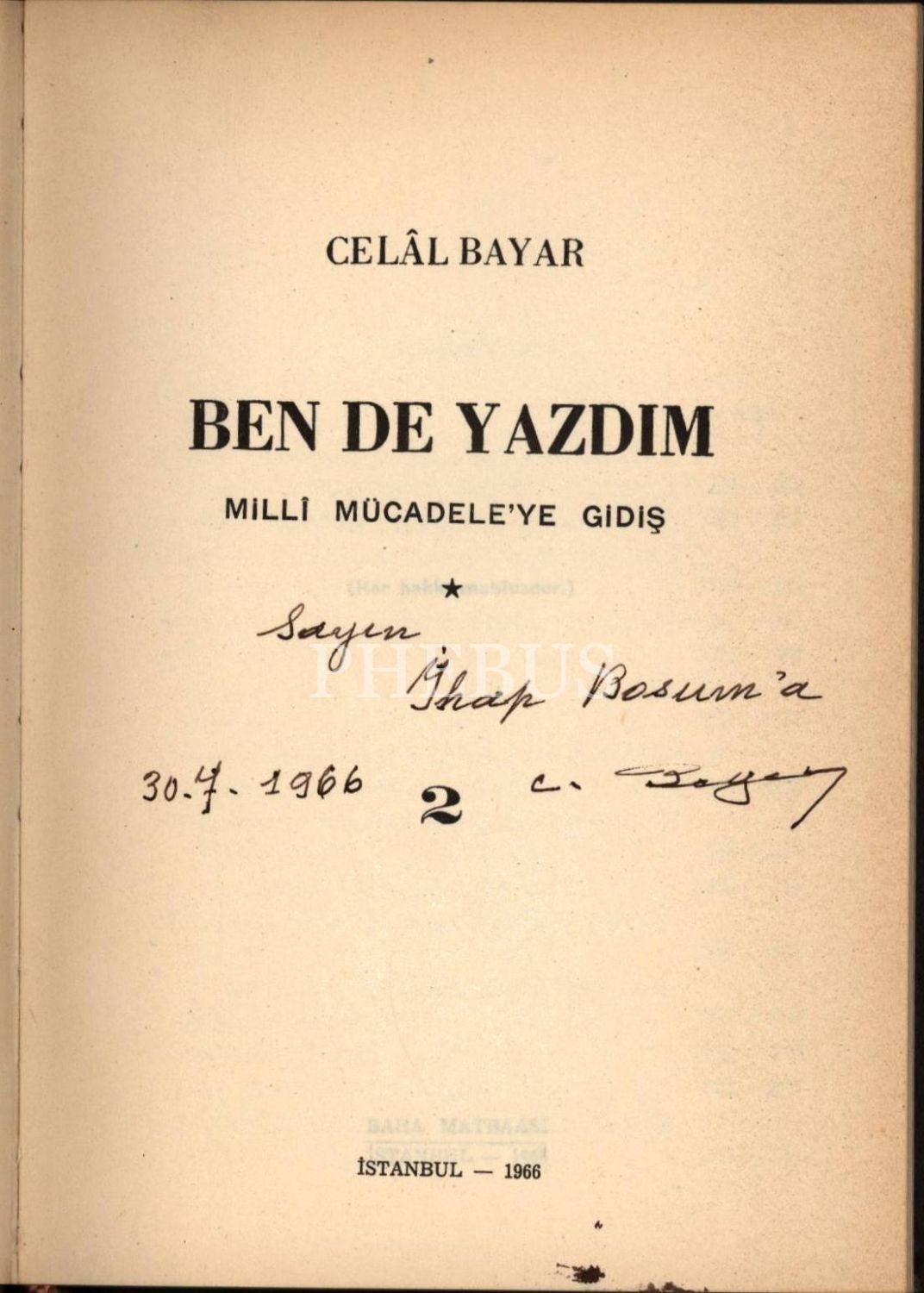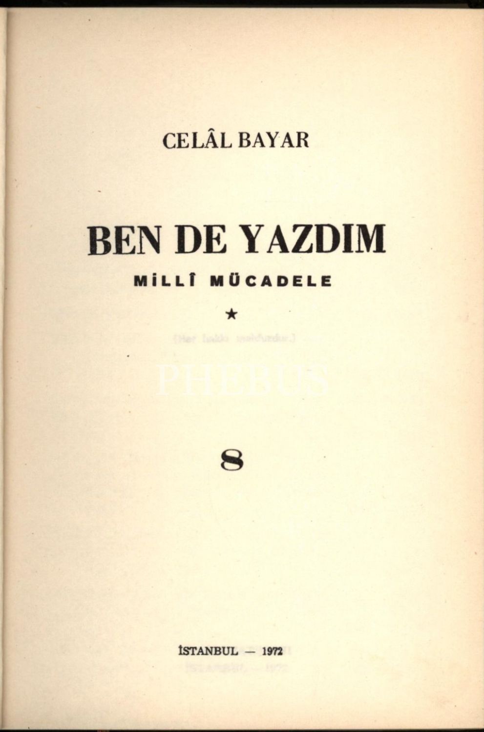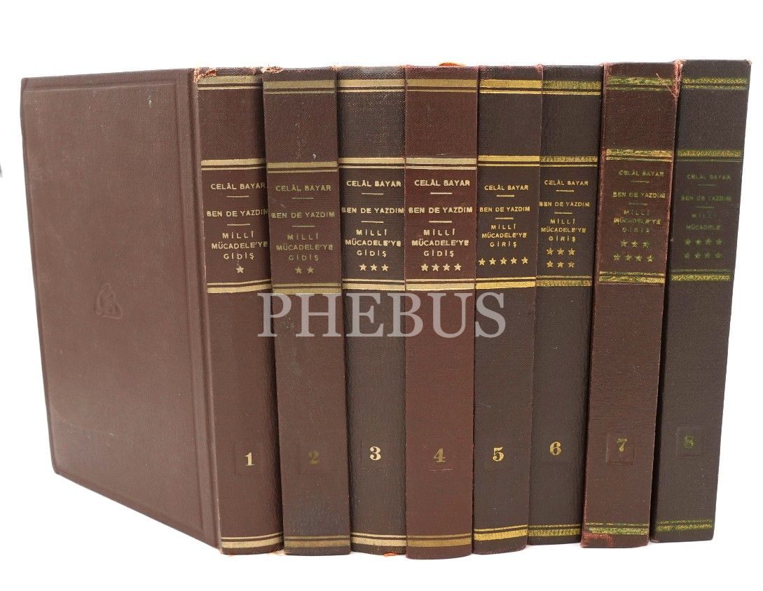 Askerî tarih: Celal Bayar´dan ithaflı ve imzalı BEN DE YAZDIM- MİLLİ MÜCADELE (8 Cilt), Celâl Bayar, Baha Matbaası, İstanbul 1965-72, 14x20 cm