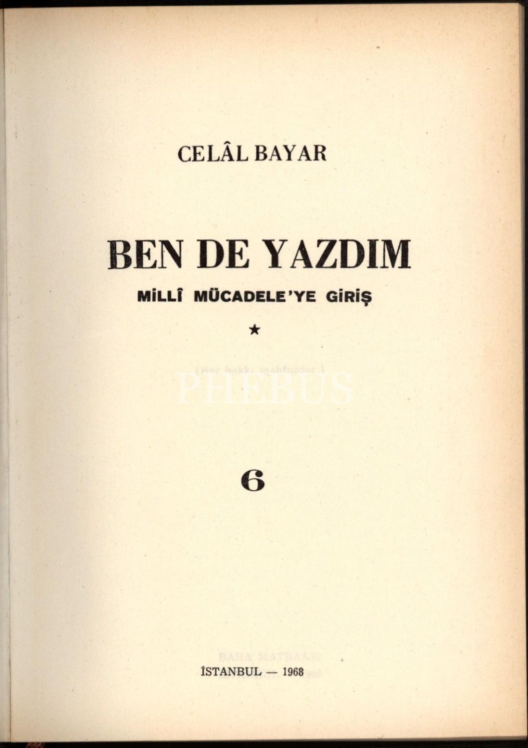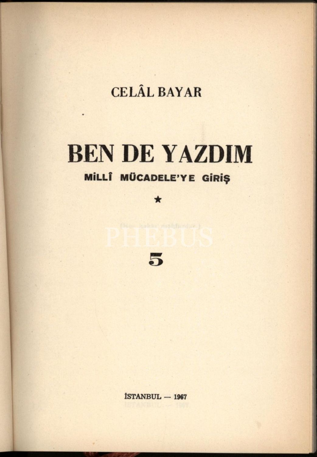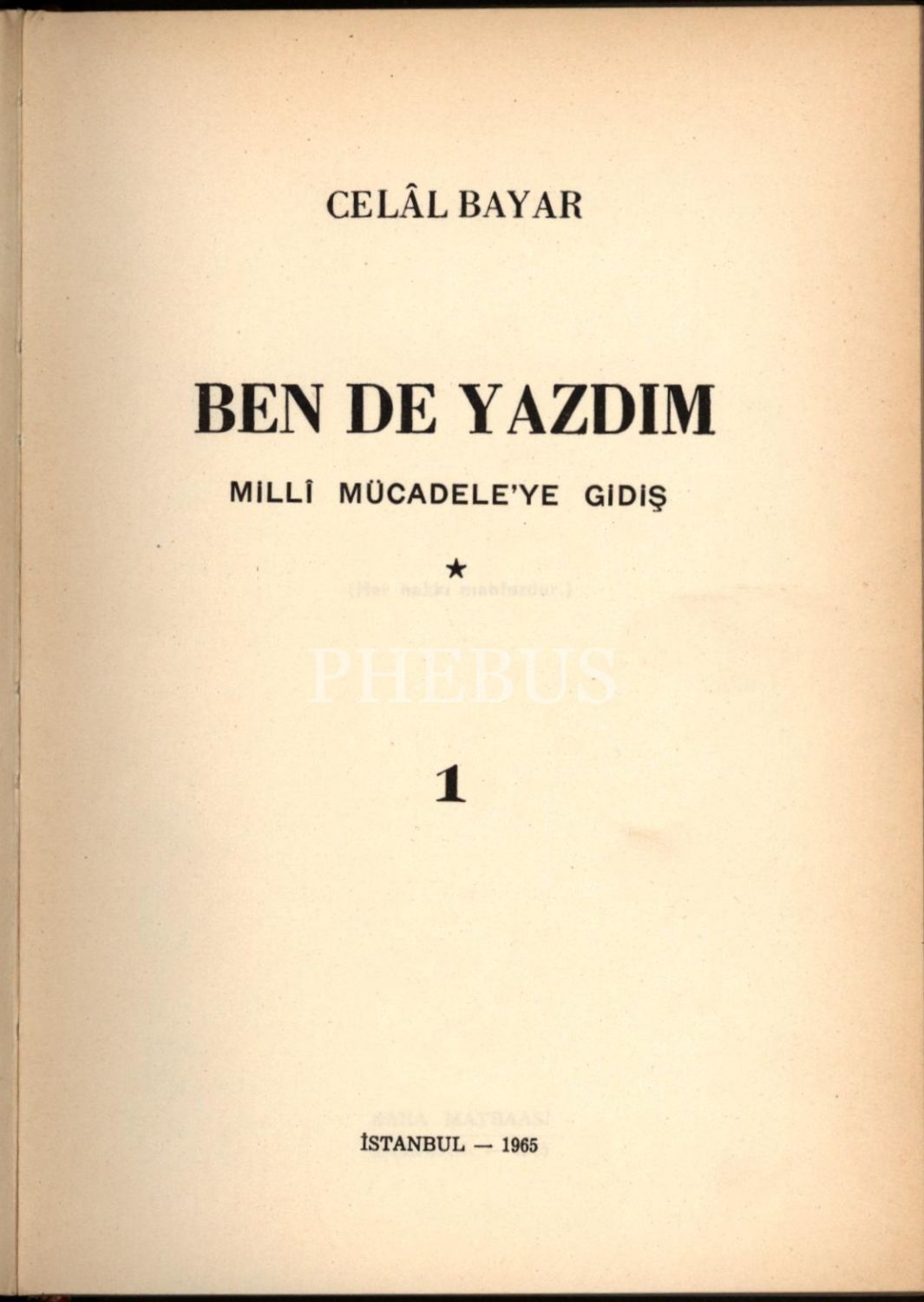 Askerî tarih: Celal Bayar´dan ithaflı ve imzalı BEN DE YAZDIM- MİLLİ MÜCADELE (8 Cilt), Celâl Bayar, Baha Matbaası, İstanbul 1965-72, 14x20 cm