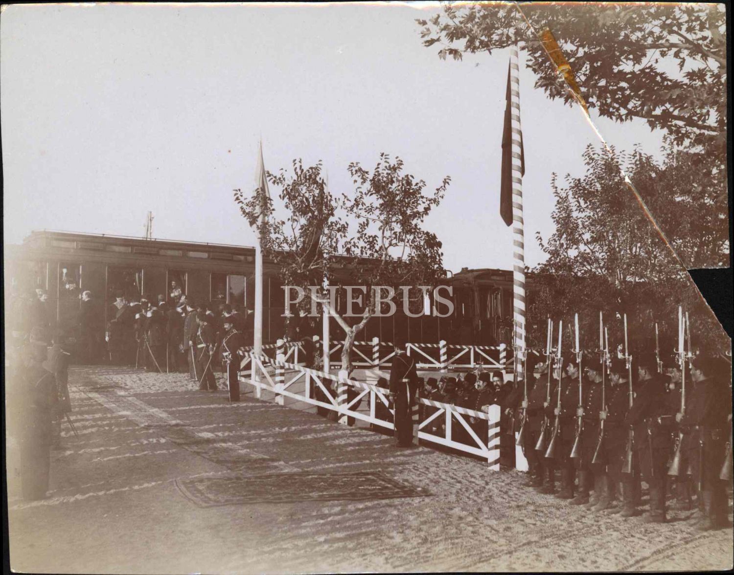 Tren istasyonunda karşılama töreni için bekleşen askerler, 20x25 cm