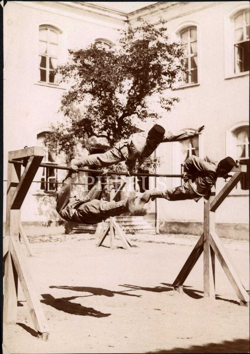 Eğitim tarihi: Askerî okul öğrencilerinin jimnastik hareket pozu, 16x22 cm