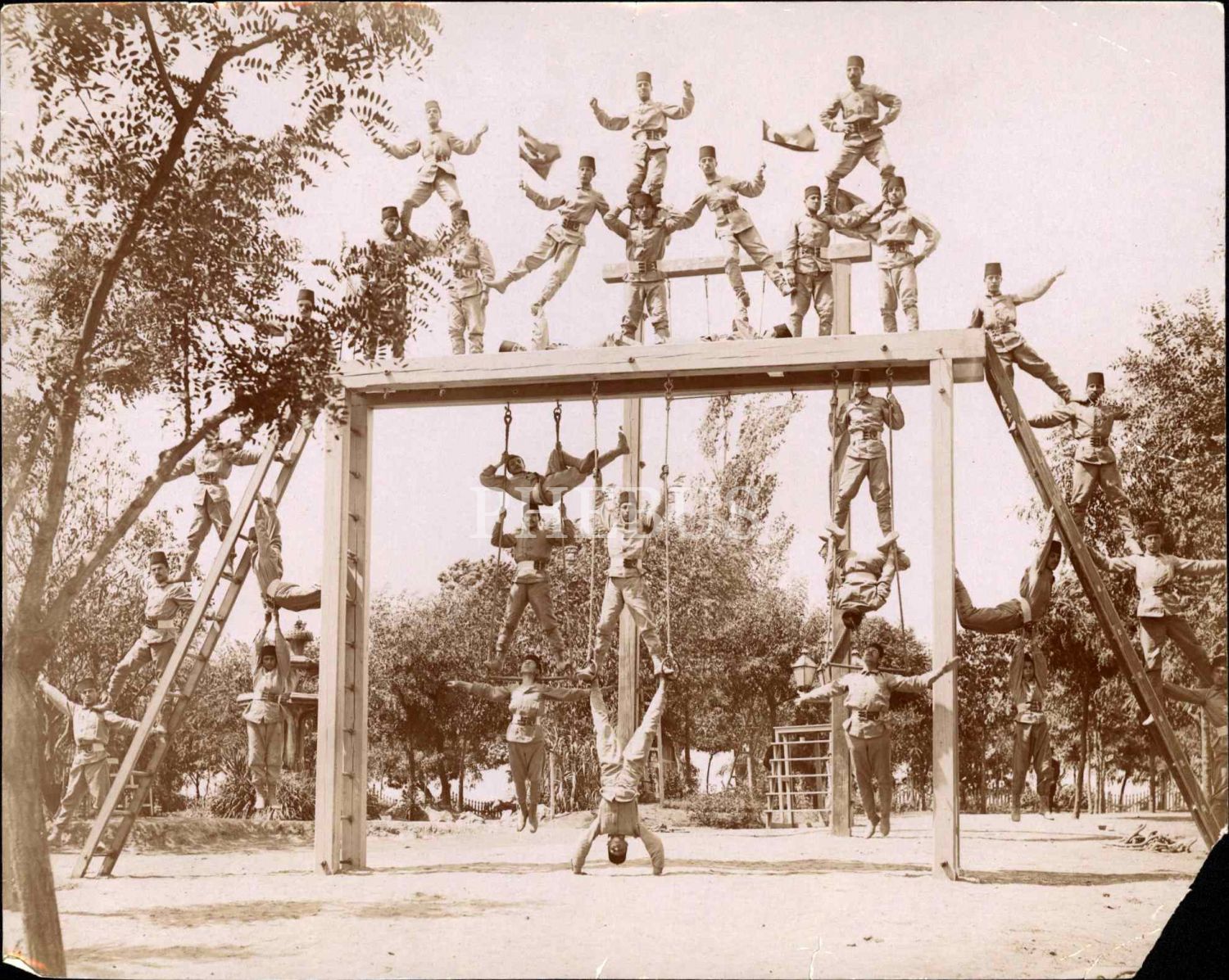 Eğitim tarihi: Askerî okul öğrencilerinin jimnastik hareket pozu, 20x25 cm