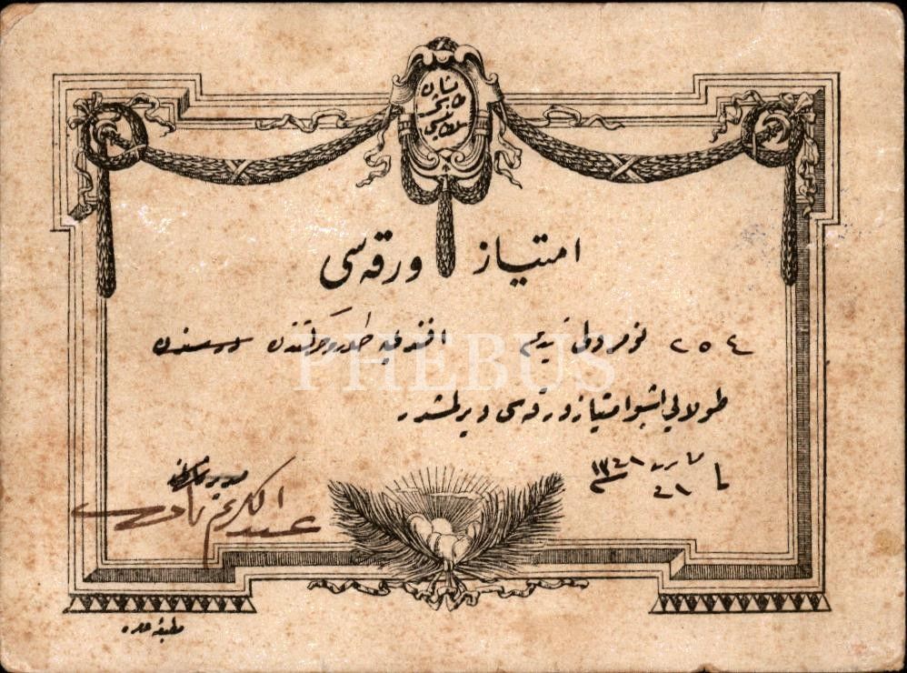 Eğitim tarihi: Nişantaşı Sultanisi´nden 1341 tarihli imtiyaz varakası [takdir belgesi], 9x13 cm