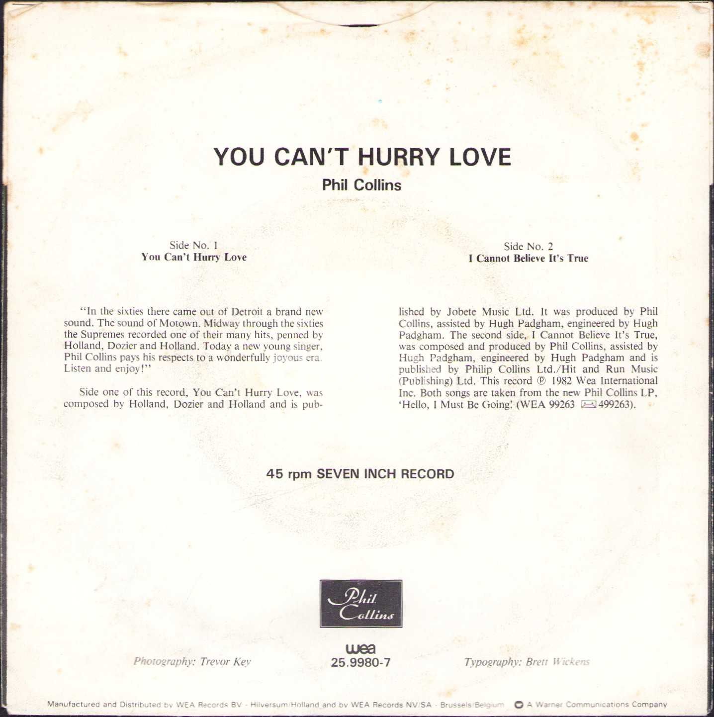 PHILL COLLINS - You Can´t Hurry Love / I Cannot Believe It´s True