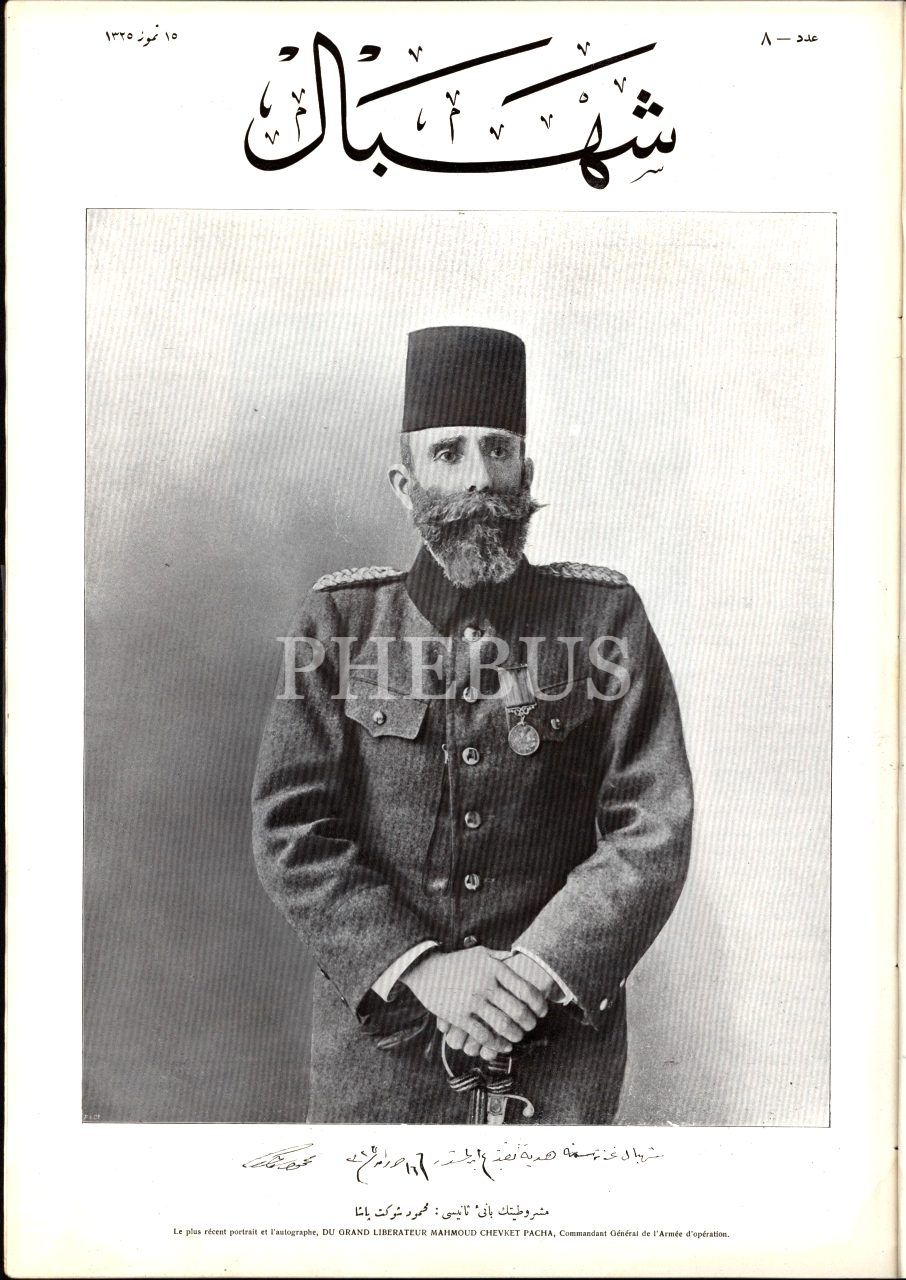 Şehbal dergisinin Mahmud Şevket Paşa kapaklı 8. sayısı, 15 Temmuz 1325, 27x39 cm, dış kapağı alt kenardan yırtık haliyle