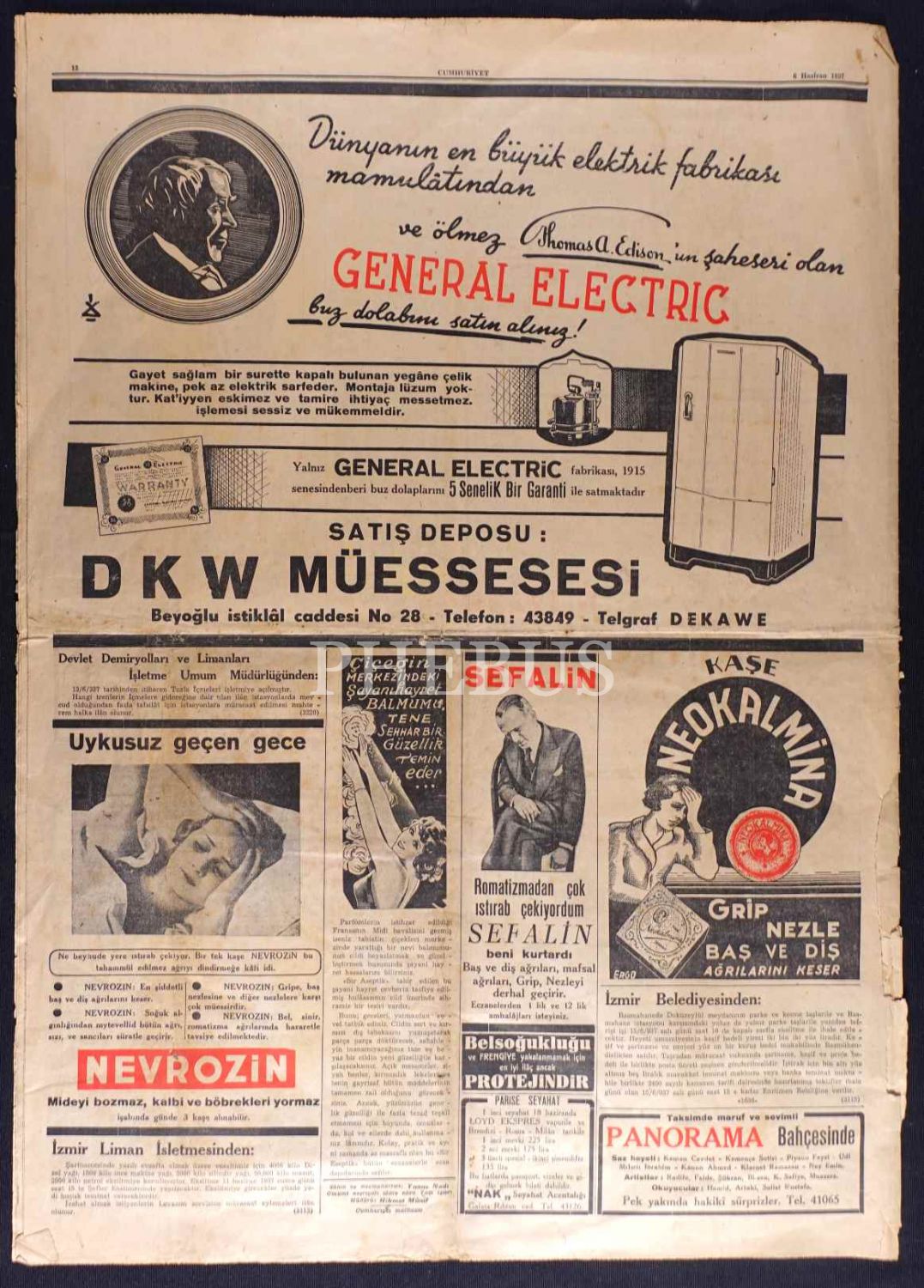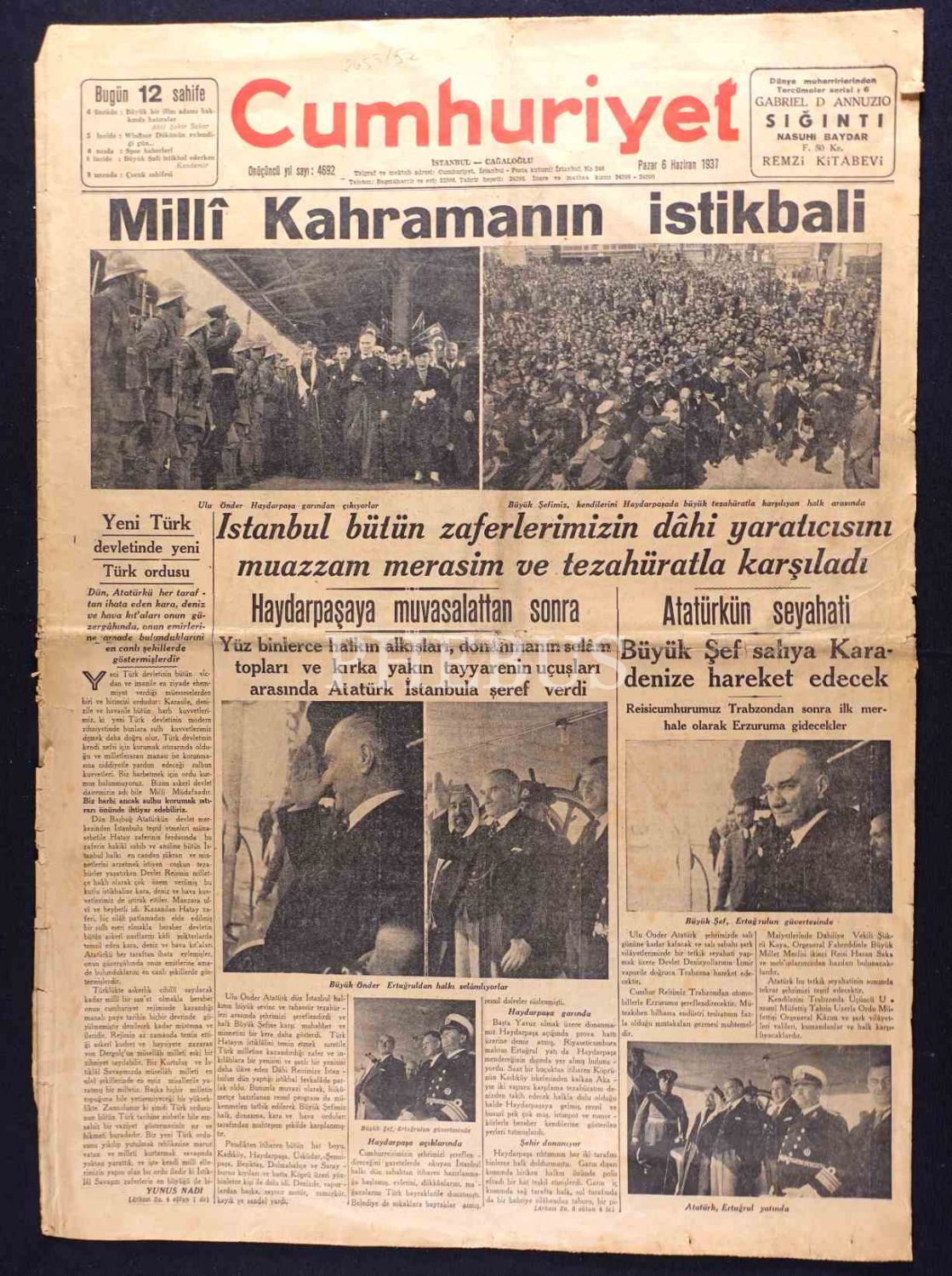 Cumhuriyet gazetesinin Mustafa Kemal Atatürk kapaklı sayısı, 6 Haziran 1937, 44x62 cm