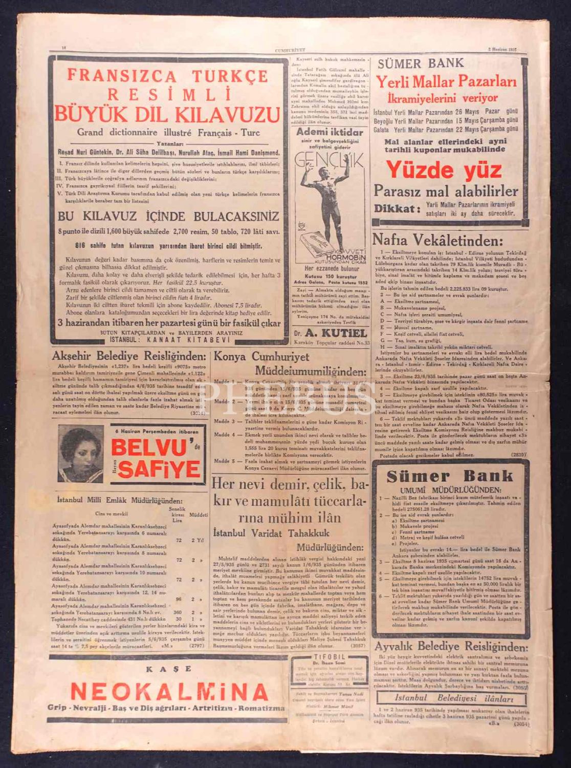 Cumhuriyet gazetesinin 2 Haziran 1935 tarihli sayısı, 45x62 cm