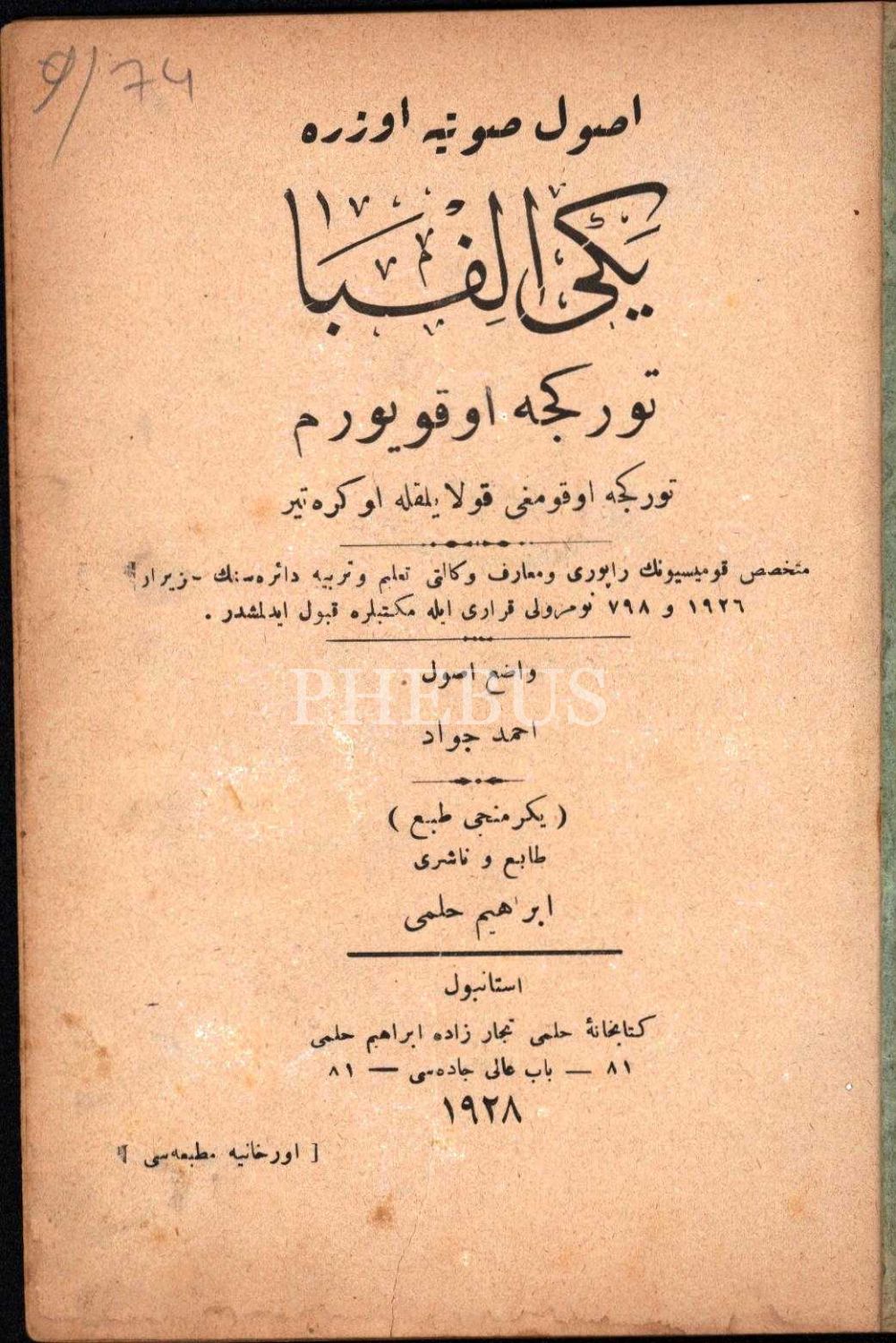 USÛL-İ SAVTİYYE ÜZERE YENİ ELİFBÂ (Türkçe Okuyorum), Ahmed Cevad, Orhaniye Matbaası, İstanbul 1928, 64 s., 14x20 cm
