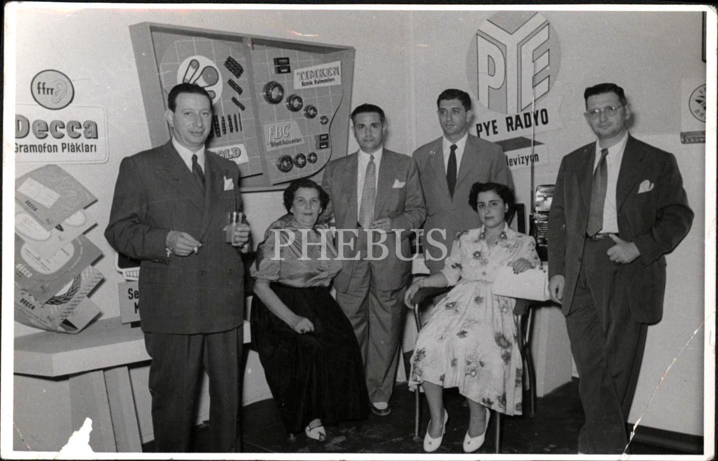 Radyo evinde toplu hatıra fotoğrafı, Foto Film-İzmir damgalı, 12x18 cm, alt köşesi kırık haliyle