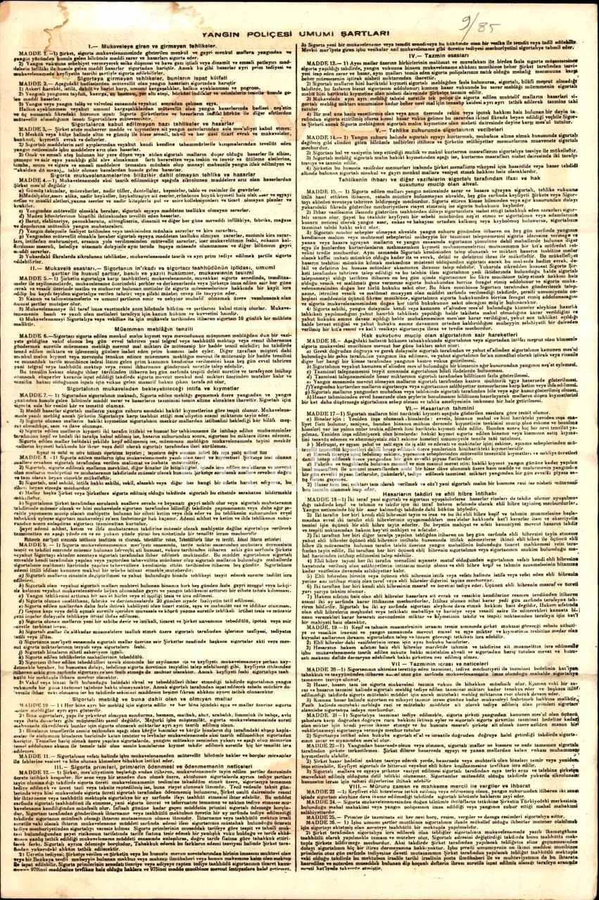 Güven Türk Anonim Sigorta Şirketi yangın sigortası sözleşmesi, İstanbul 1950, 26x40 cm