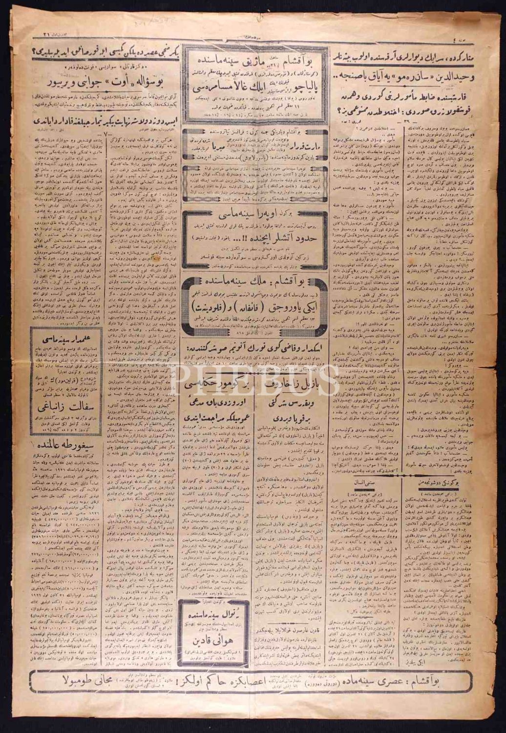 Son Saat gazetesinin 21 Teşrinievvel 1927 tarihli sayısı, 43x62 cm