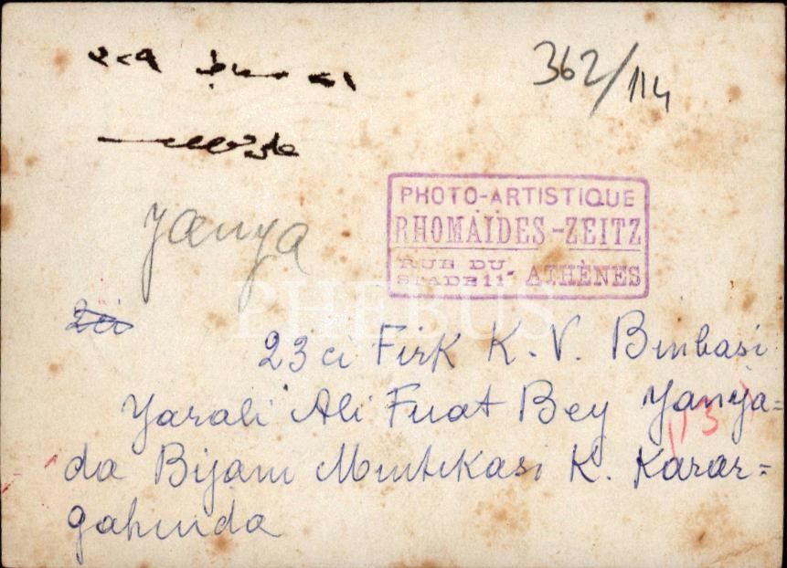 Yaralı Binbaşı Ali Fuad Bey karargâhta, Yanya 1329, 8x11 cm